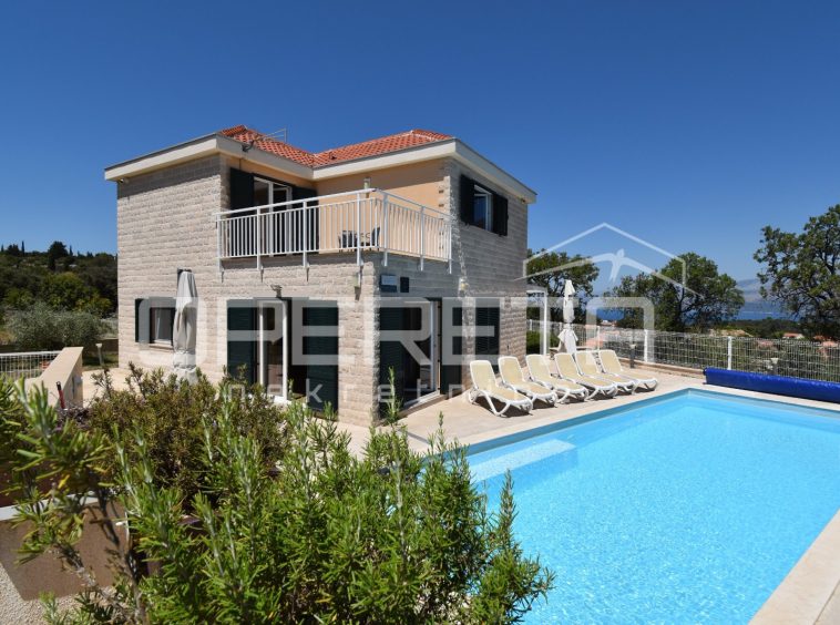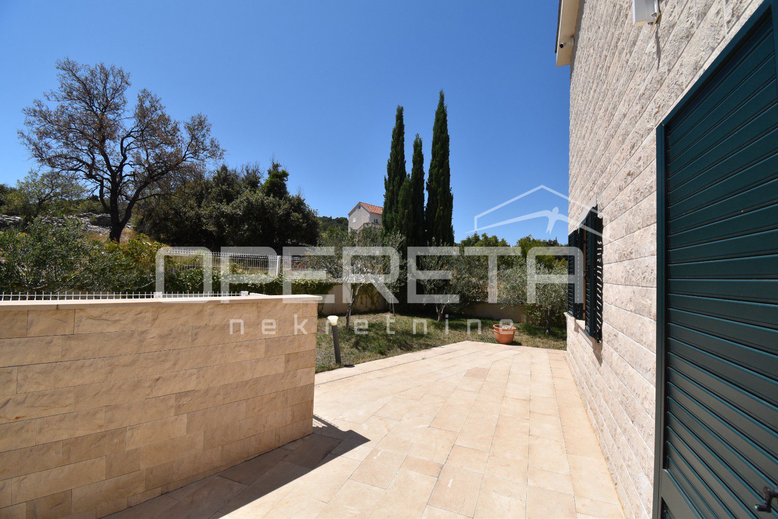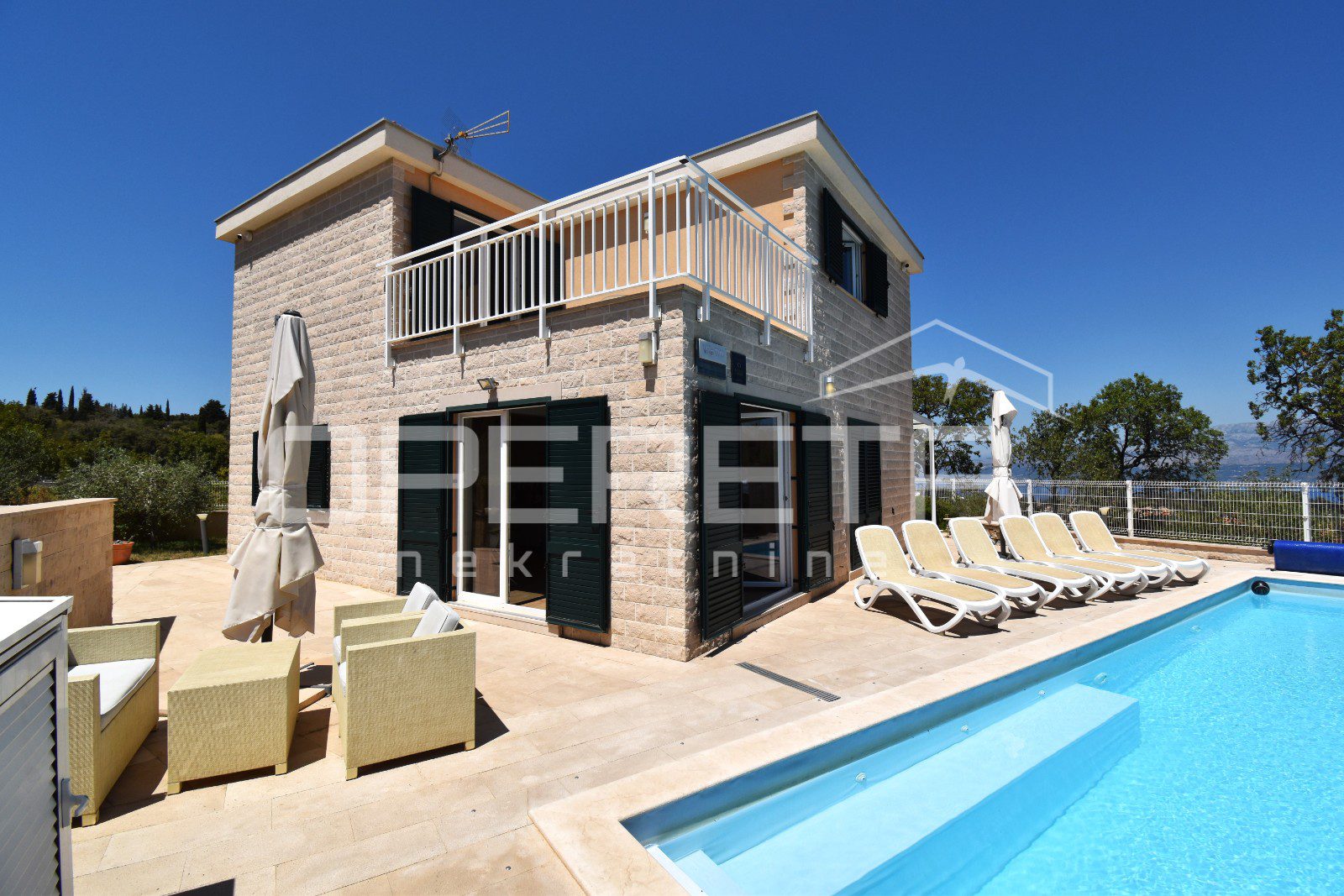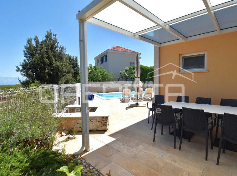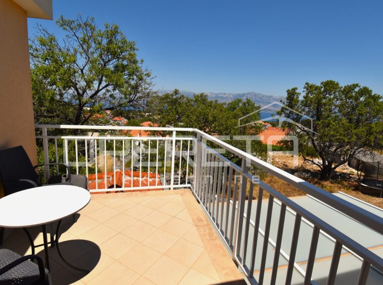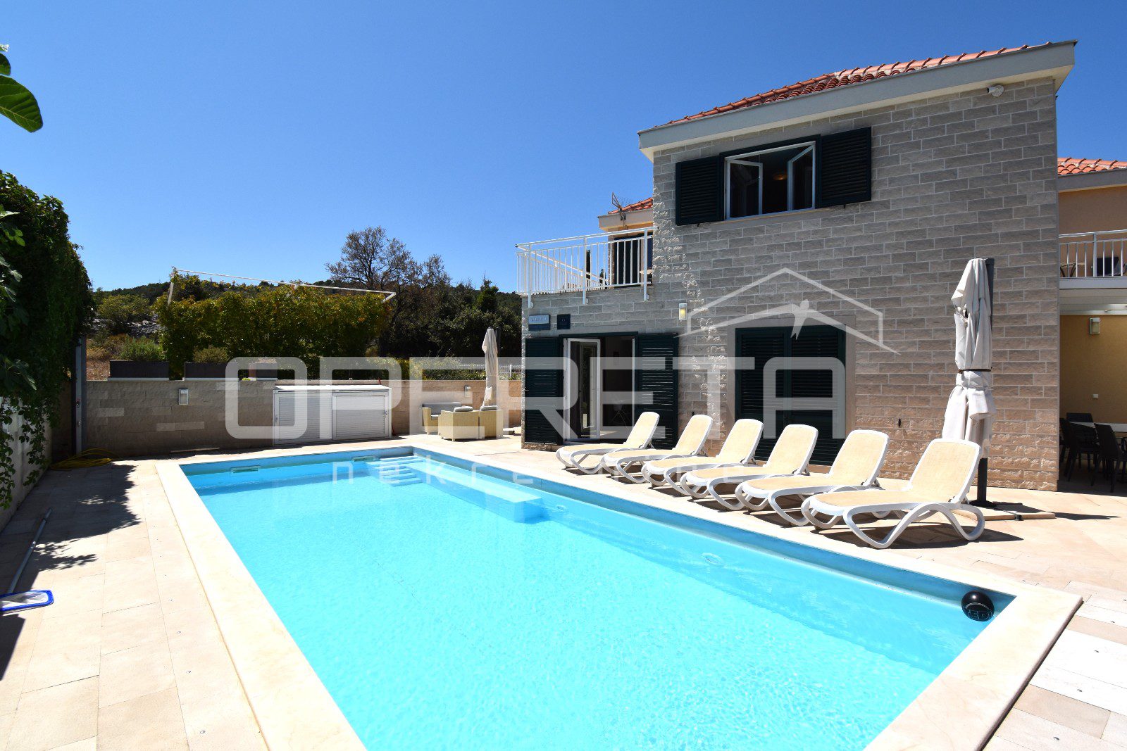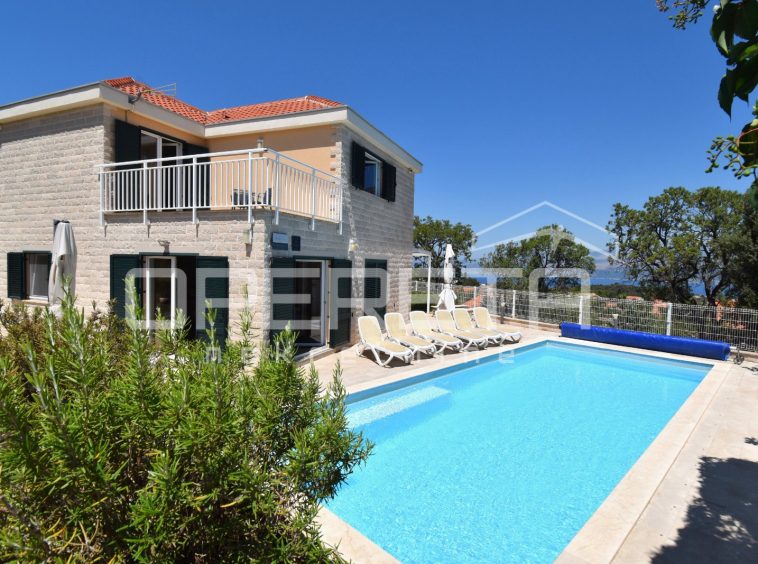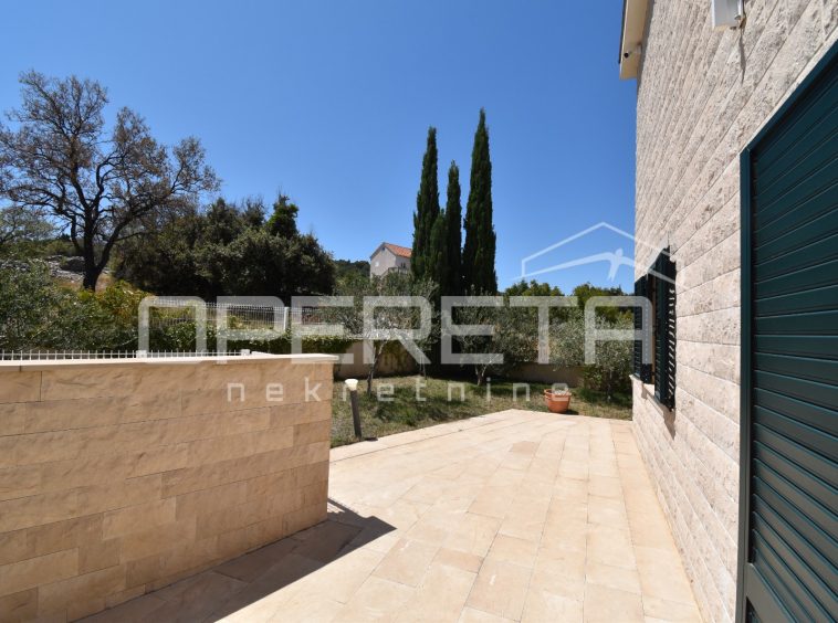 The house was built in a traditional Dalmatian style, with a pronounced use of Brač stone in the exterior design, allowing it to blend harmoniously into its surroundings. The garden is carefully landscaped and planted with Mediterranean vegetation, while the outdoor area is completed by a spacious terrace, sun deck and swimming pool. Parking spaces are provided in front of the house and discreetly integrated into the plot.