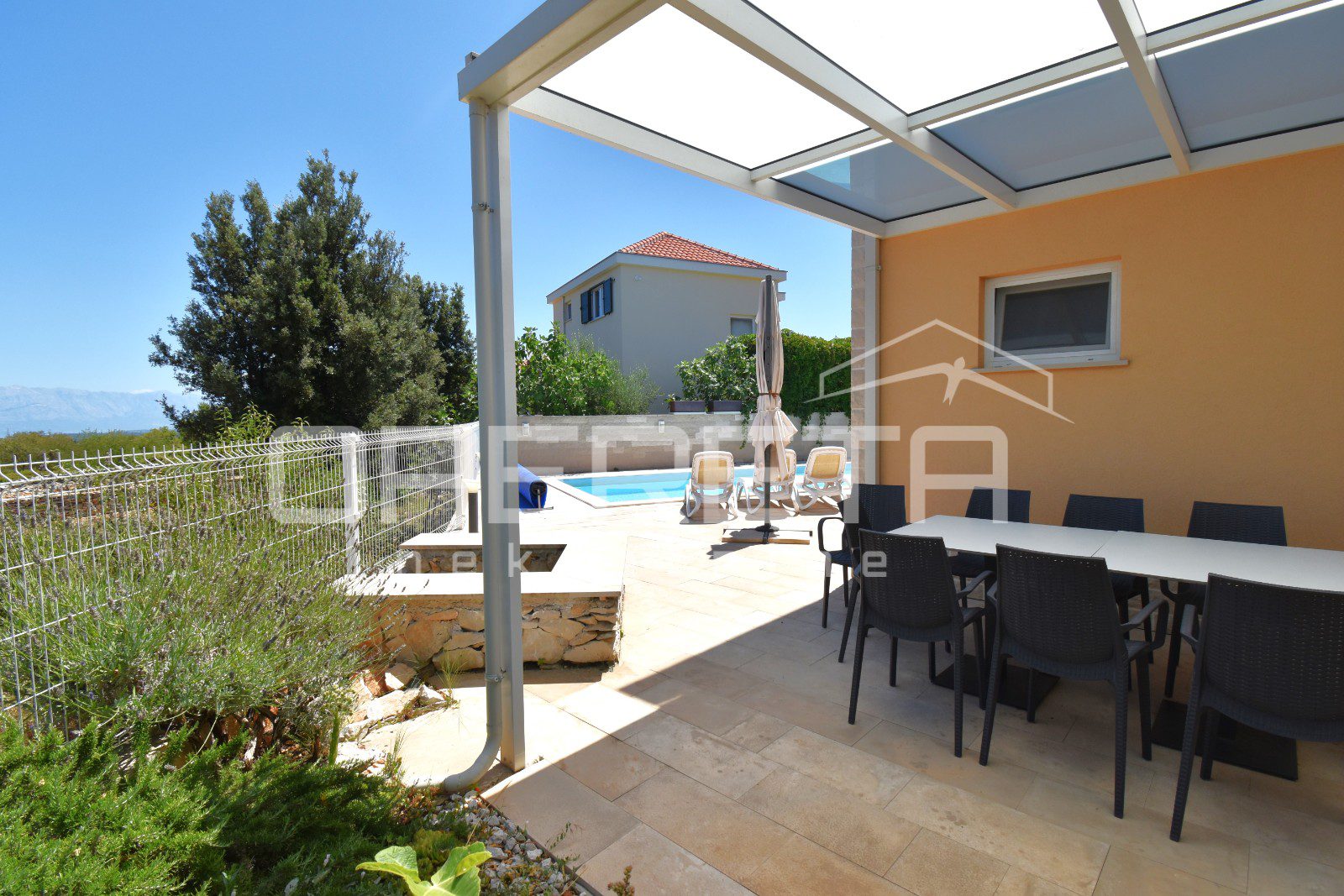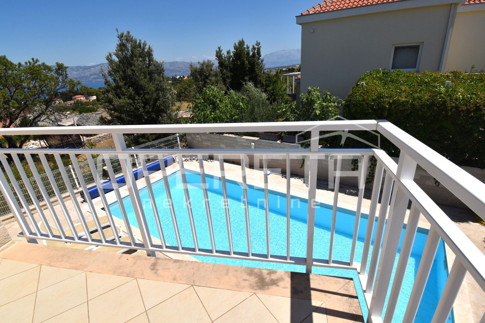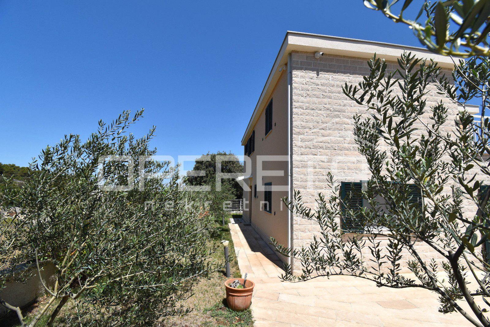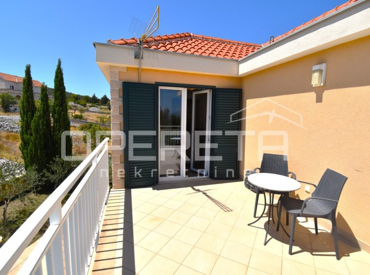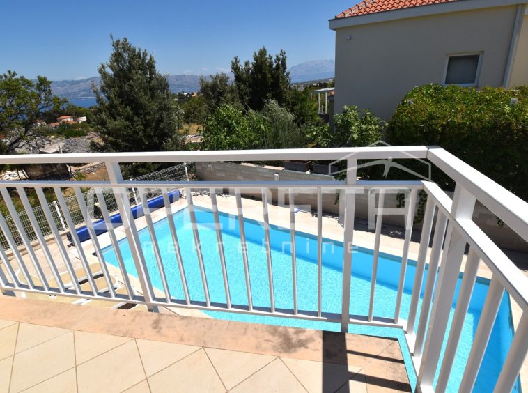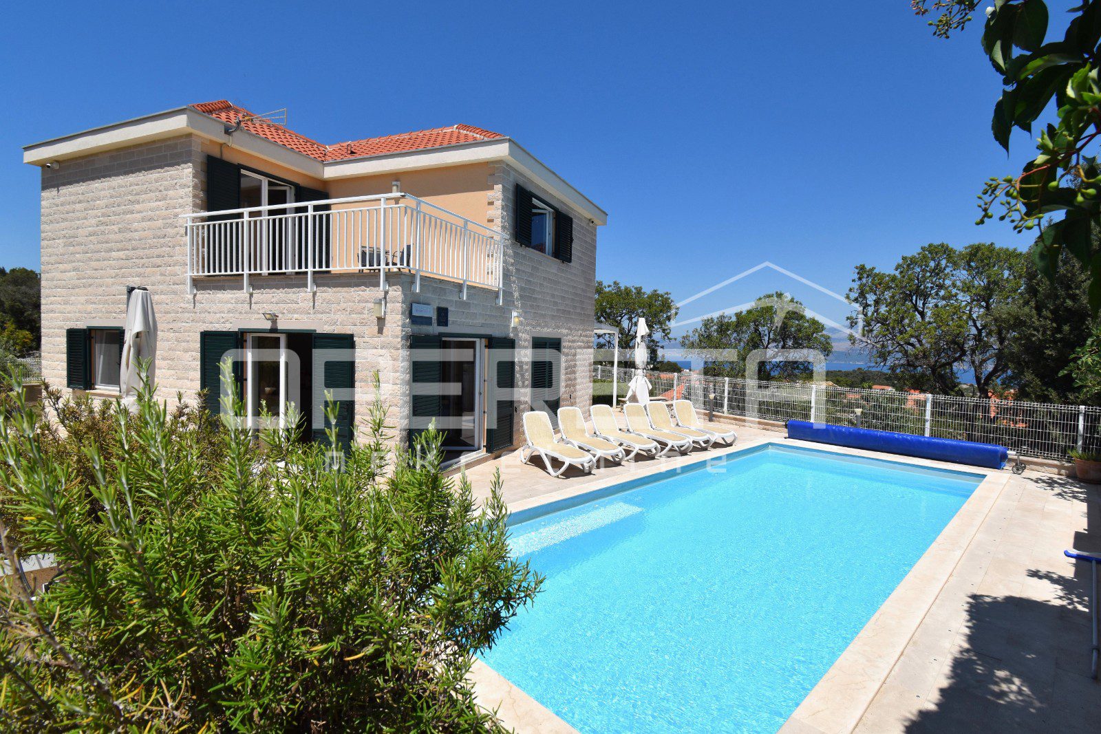 The house was built in a traditional Dalmatian style, with a pronounced use of Brač stone in the exterior design, allowing it to blend harmoniously into its surroundings. The garden is carefully landscaped and planted with Mediterranean vegetation, while the outdoor area is completed by a spacious terrace, sun deck and swimming pool. Parking spaces are provided in front of the house and discreetly integrated into the plot.