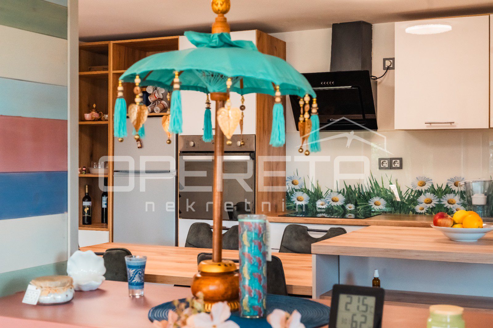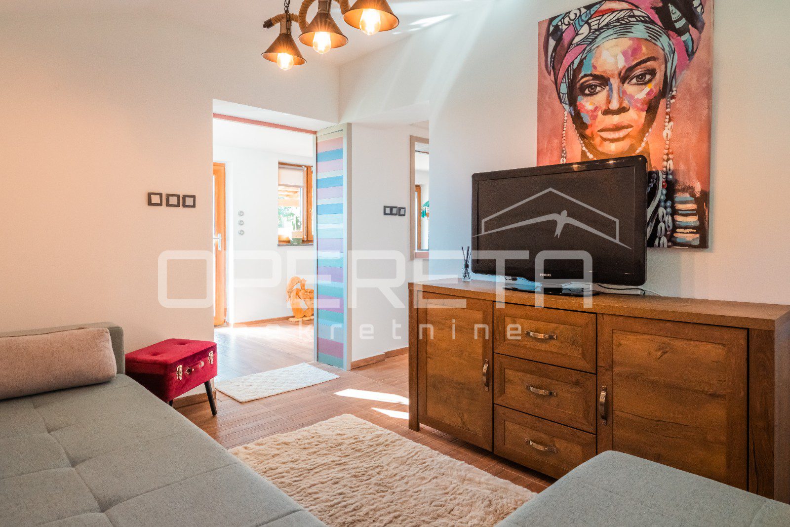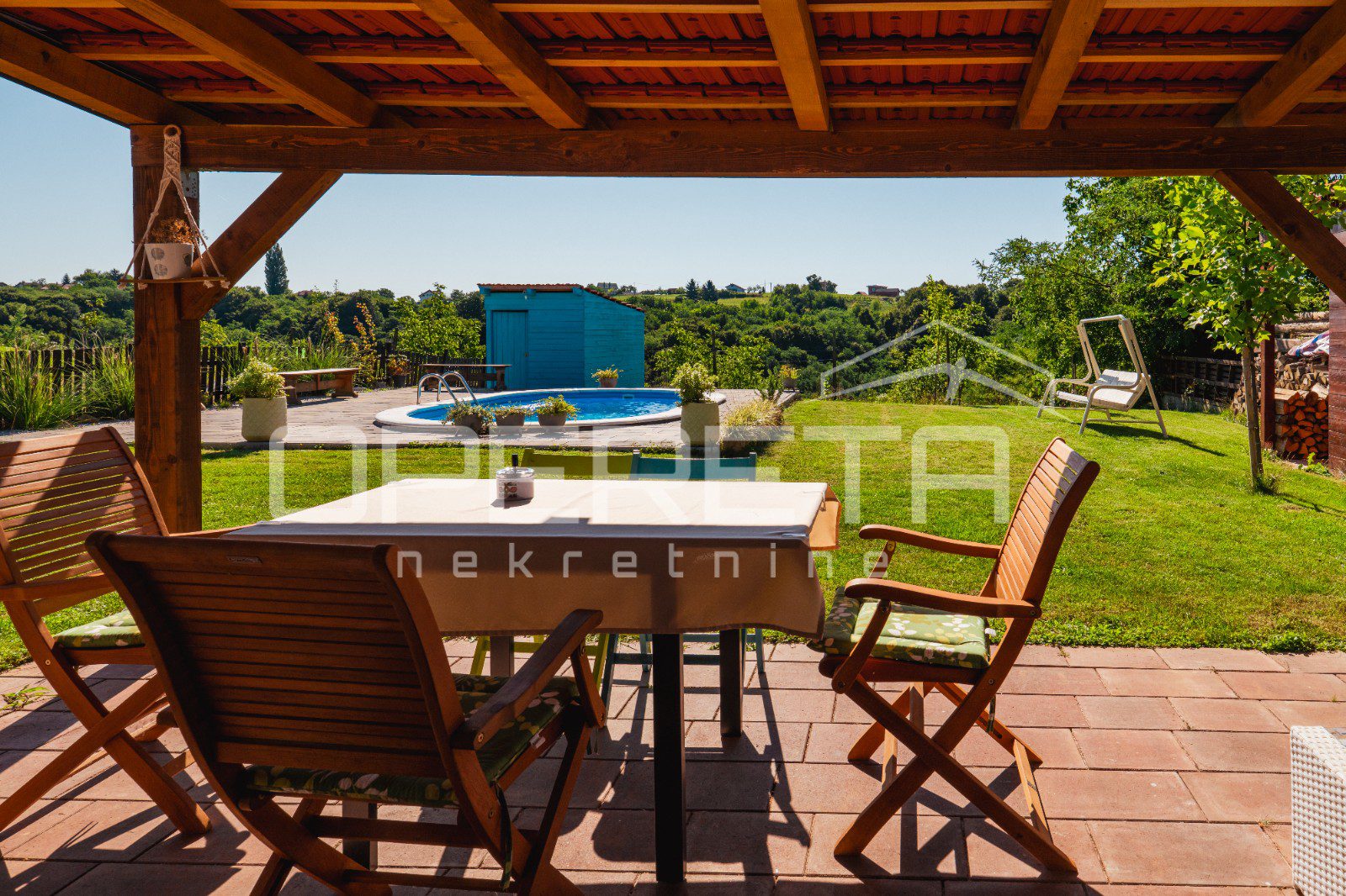 In a unique landscape, completely natural surroundings, a high single-storey house of 85 m2 with an outdoor swimming pool is for sale. The house consists of all the facilities important for comfortable living or tourist rental: living area, kitchen, bathroom and bedroom. It also contains preparation for installing a sauna. In addition to a spacious yard, the house also has a terrace of 13.86 m2 and a balcony of 19.07 m2. This unique house offers several possibilities. It is ideal for living, weekend vacation or investment. It is an exceptional investment potential considering that the house is in an established tourist rental, categorized with 4 stars. In the immediate vicinity there are numerous attractions, sports and recreational facilities such as famous wineries, Mađerkin breg, catering facilities and the like, and the Sveti Martin Spa. An excellent and rarely available opportunity!