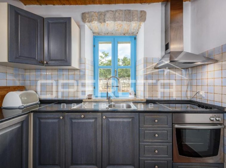 The ground floor of the house welcomes you with a cozy living room featuring a wood-burning stove, creating a warm and relaxing ambiance, perfect for colder winter days. In the same area, there is a kitchen with a dining room and a practical guest toilet. Spiral stairs lead to the first floor where there are three bedrooms and the main bathroom. The upper floor opens onto a terrace with a beautiful view of the surrounding landscape and the sea in the background. For maximum comfort, the house is equipped with two new air conditioning units for heating and cooling, one on each floor.