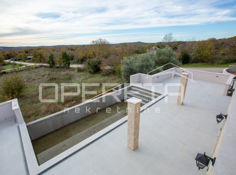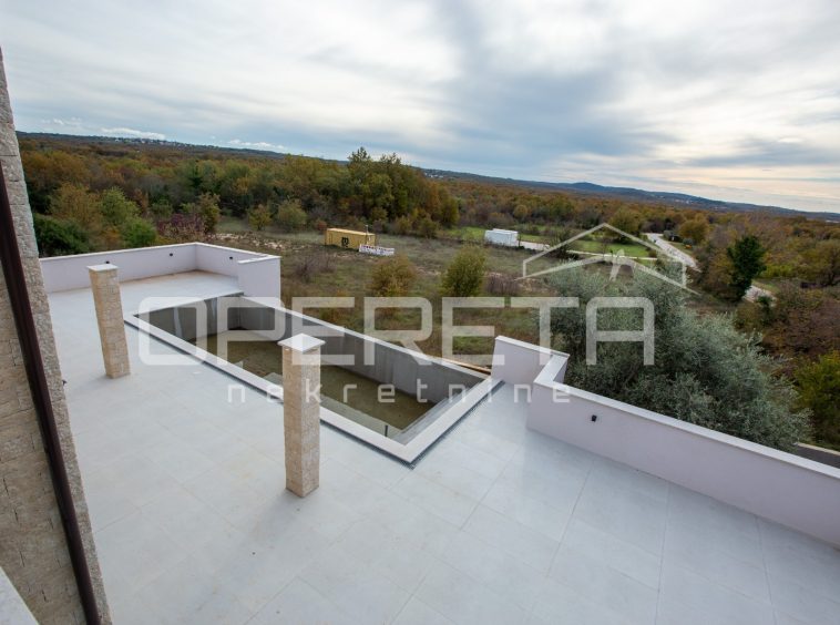 A newly constructed detached home offering unobstructed views, a spacious garage, and a stunning infinity pool.
