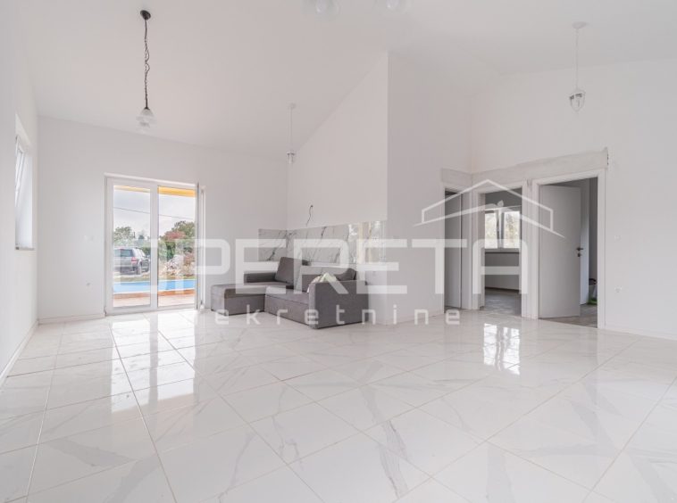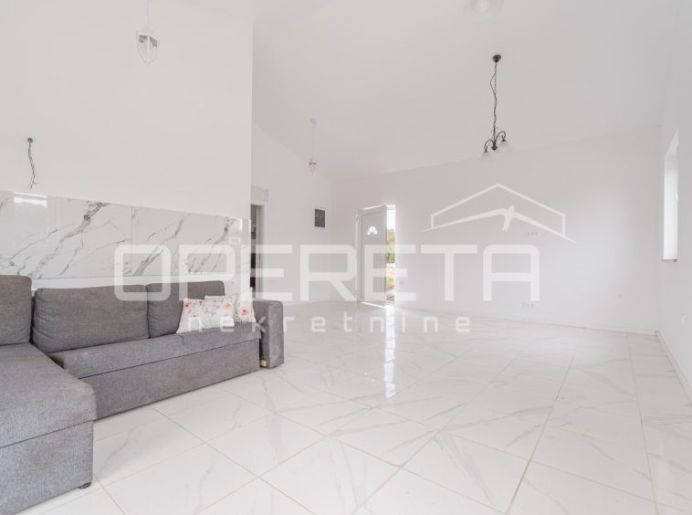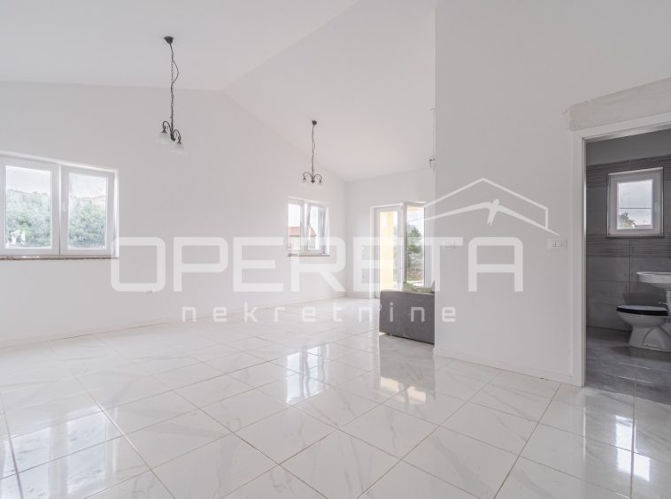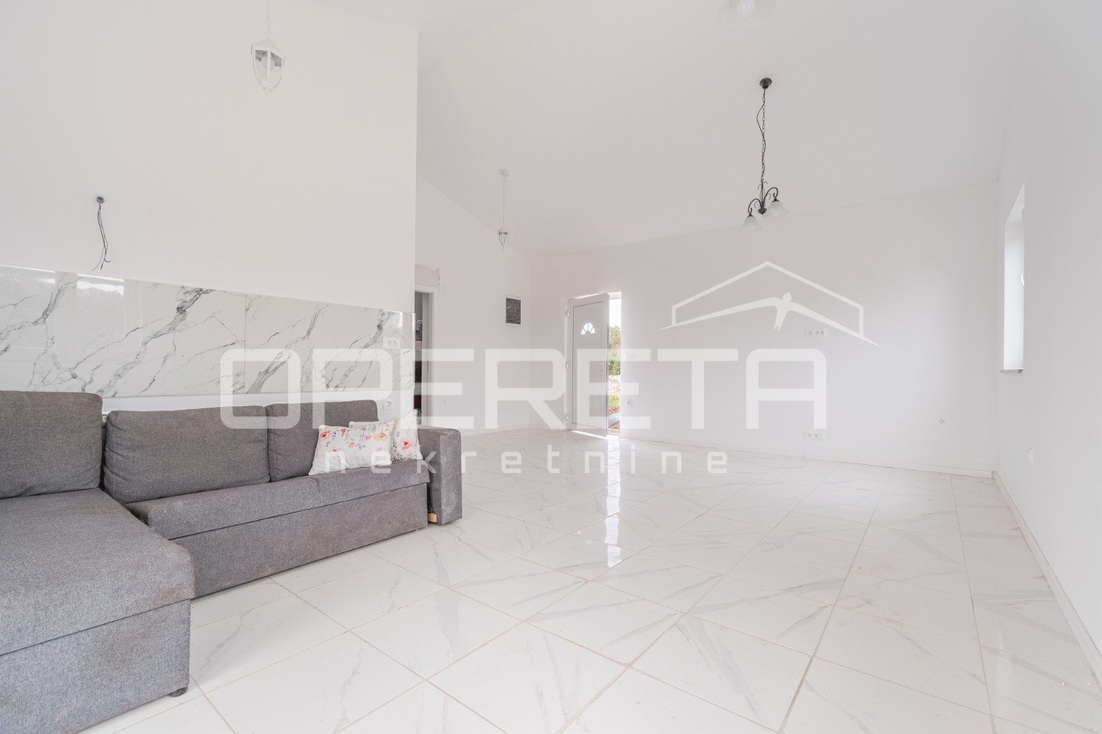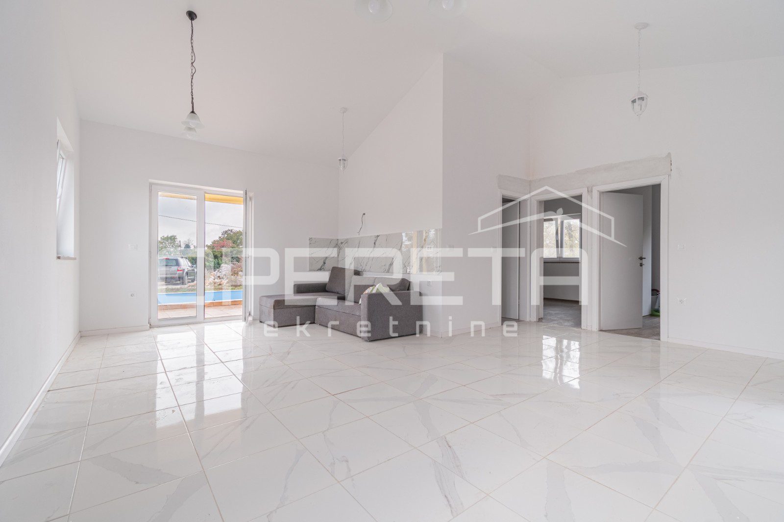 In a quiet location in Čabrunići, a single-storey house is for sale, ideal for year-round living or for tourist rental. The house consists of two bedrooms, a bathroom and an open living area with a kitchen and dining room, with direct access to a 10 m² covered terrace.