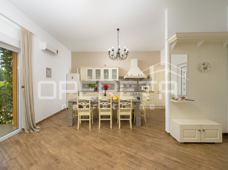 The yard is completely fenced and carefully landscaped with Mediterranean vegetation, which ensures privacy and makes the property ideal for families with children and pets.