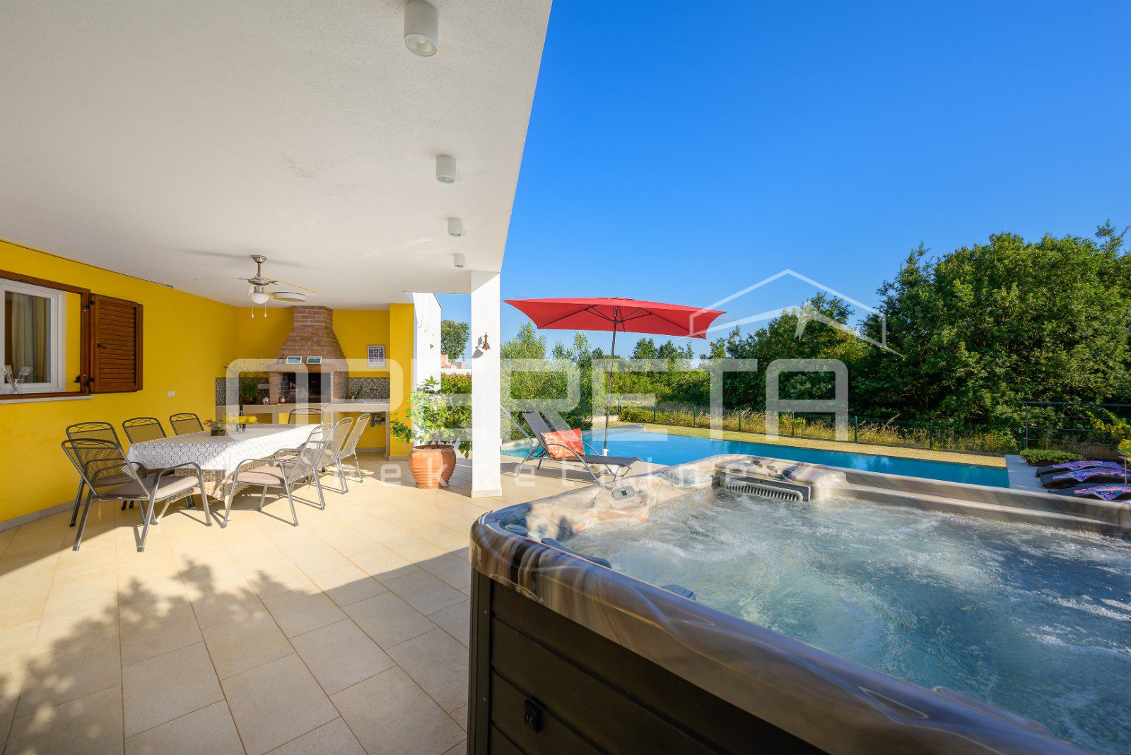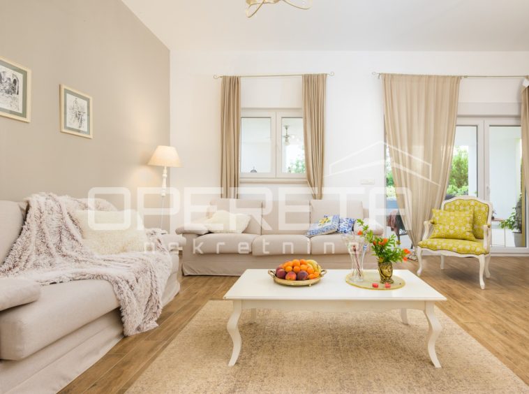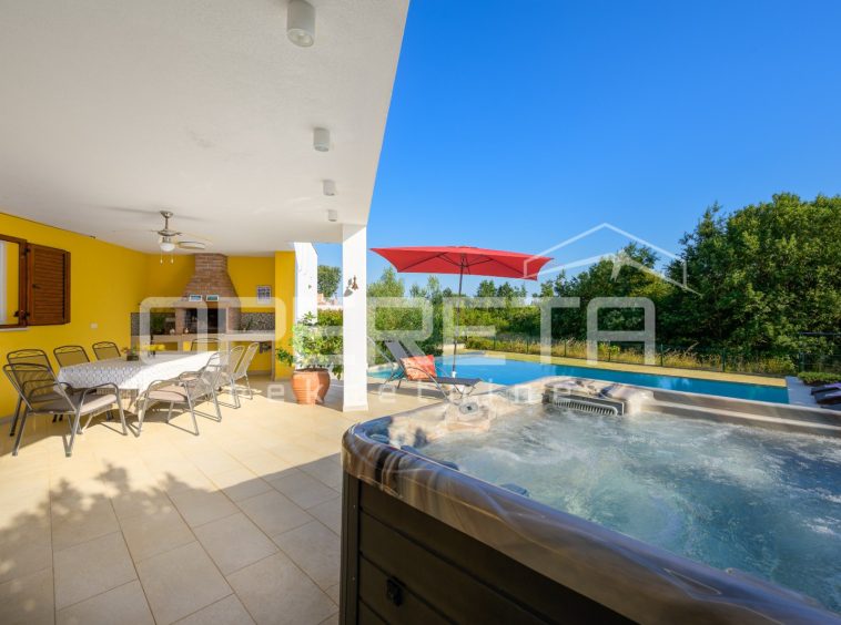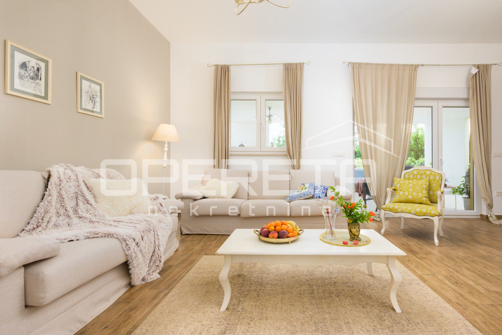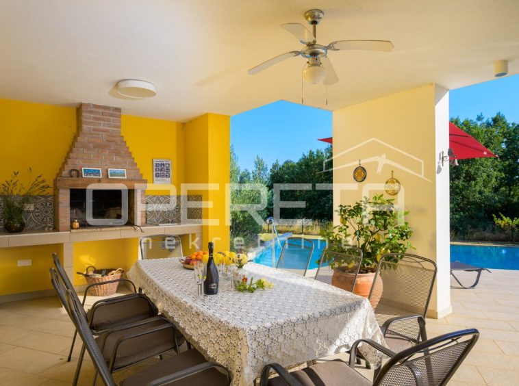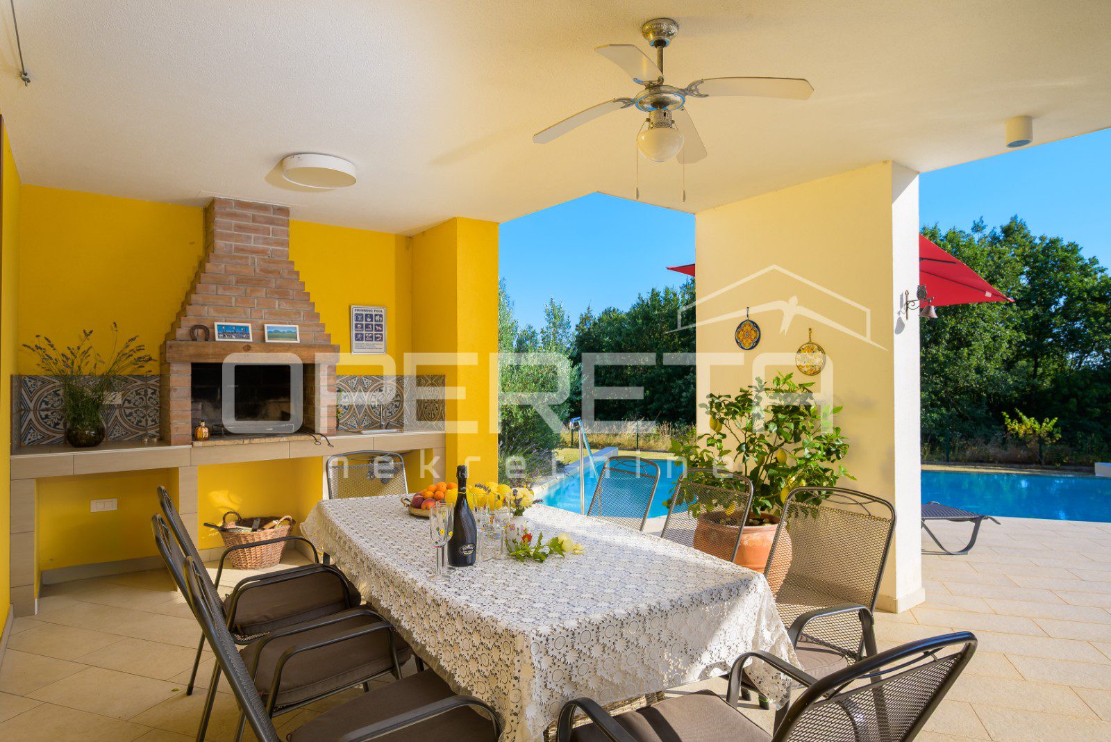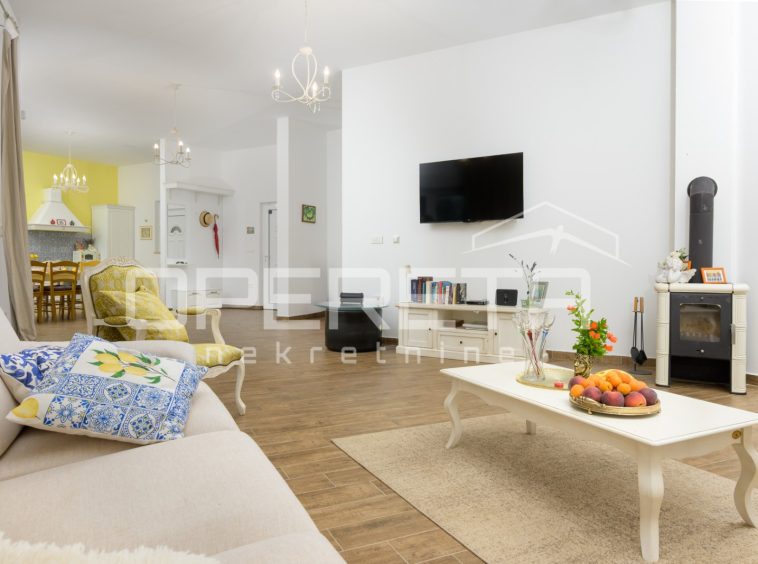 The yard is completely fenced and carefully landscaped with Mediterranean vegetation, which ensures privacy and makes the property ideal for families with children and pets.