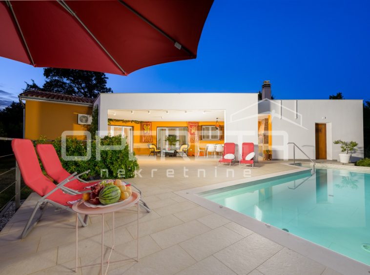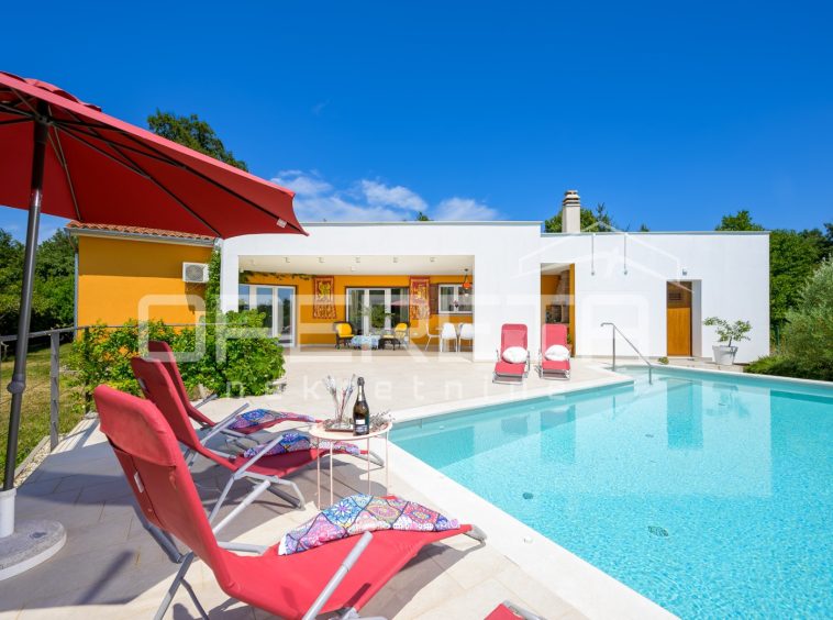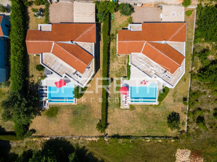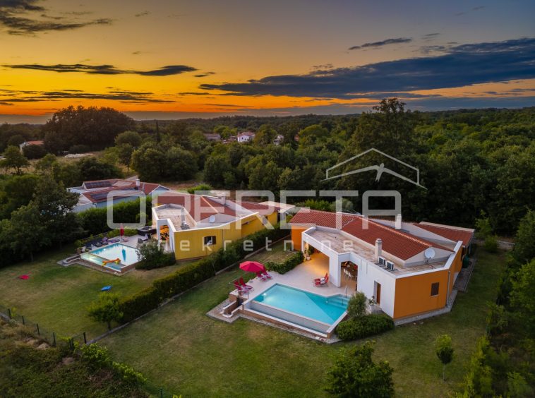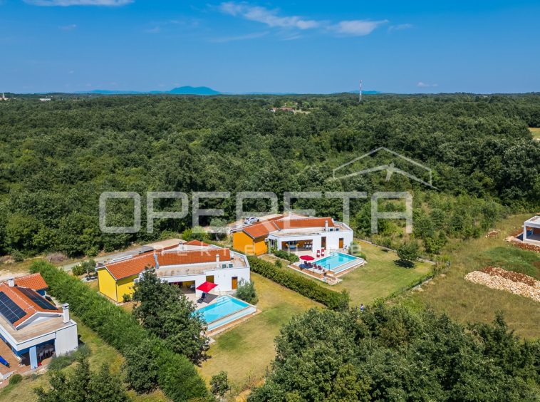 Two attractive modern villas in a set are for sale, located next to each other, in a peaceful setting in central Istria, not far from the magical medieval town of Svetvinčenat. This rare complex represents an ideal opportunity for investment, but also for private use – as a family estate or two independent holiday homes with complete privacy.