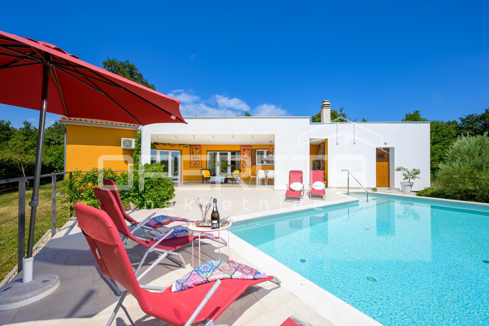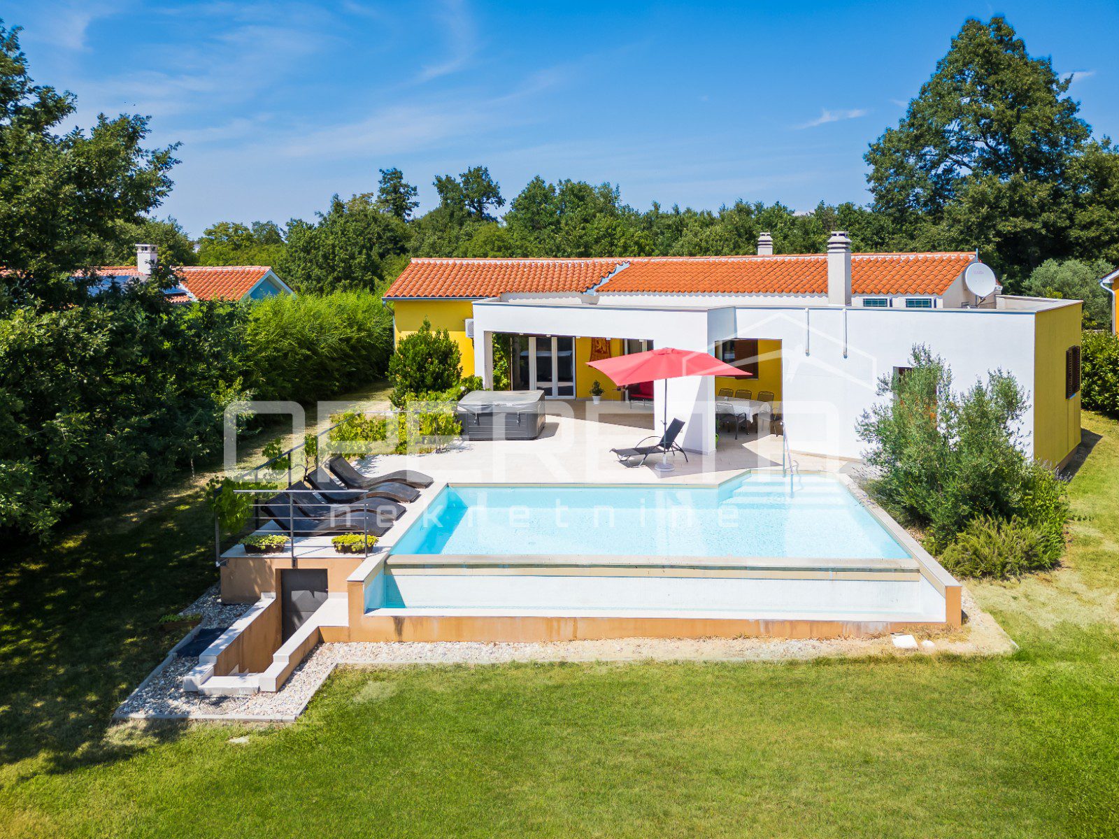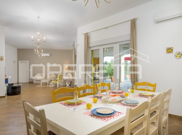 The yard is completely fenced and decorated with Mediterranean vegetation, ensuring privacy and security – ideal for families with children and pets.