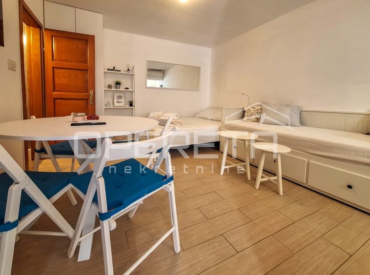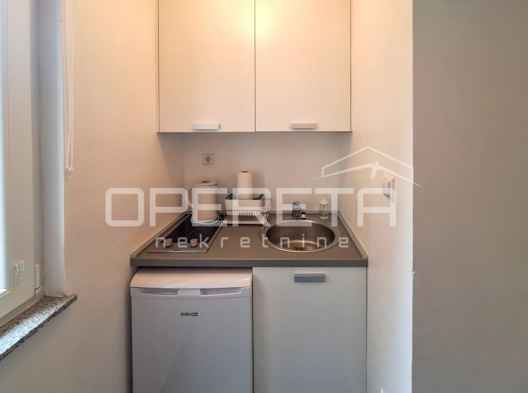 On the ground floor there is a 20 m2 apartment, consisting of a kitchen, a bathroom and a living room with a bed.