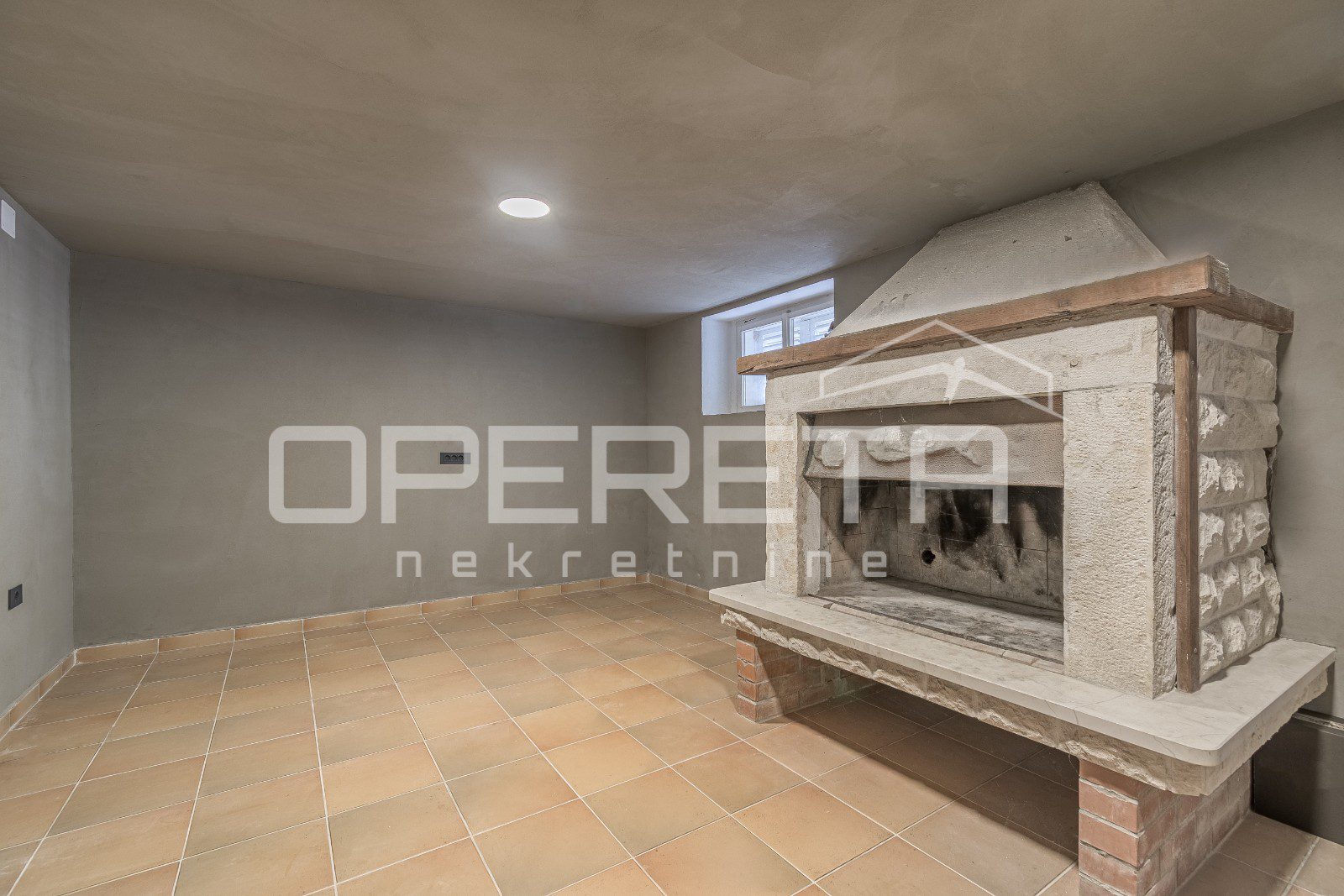 The house consists of four air-conditioned bedrooms, two indoor bathrooms, and an additional outdoor bathroom with a sauna. It features a modern and fully equipped kitchen with a dining area and living room. Additional value is provided by the outdoor summer kitchen with a dining space and a traditional tavern with a fireplace.