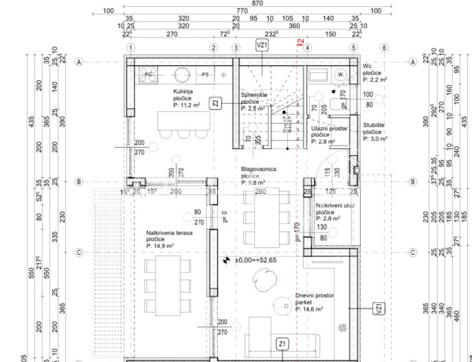 Located in a quiet area of Vodice, approximately 1.5 km from the beach and town center, this modern duplex house is currently under construction. Facing southwest, the property is filled with natural light and perfectly combines contemporary design with functionality – ideal for family living or as a tourism investment.