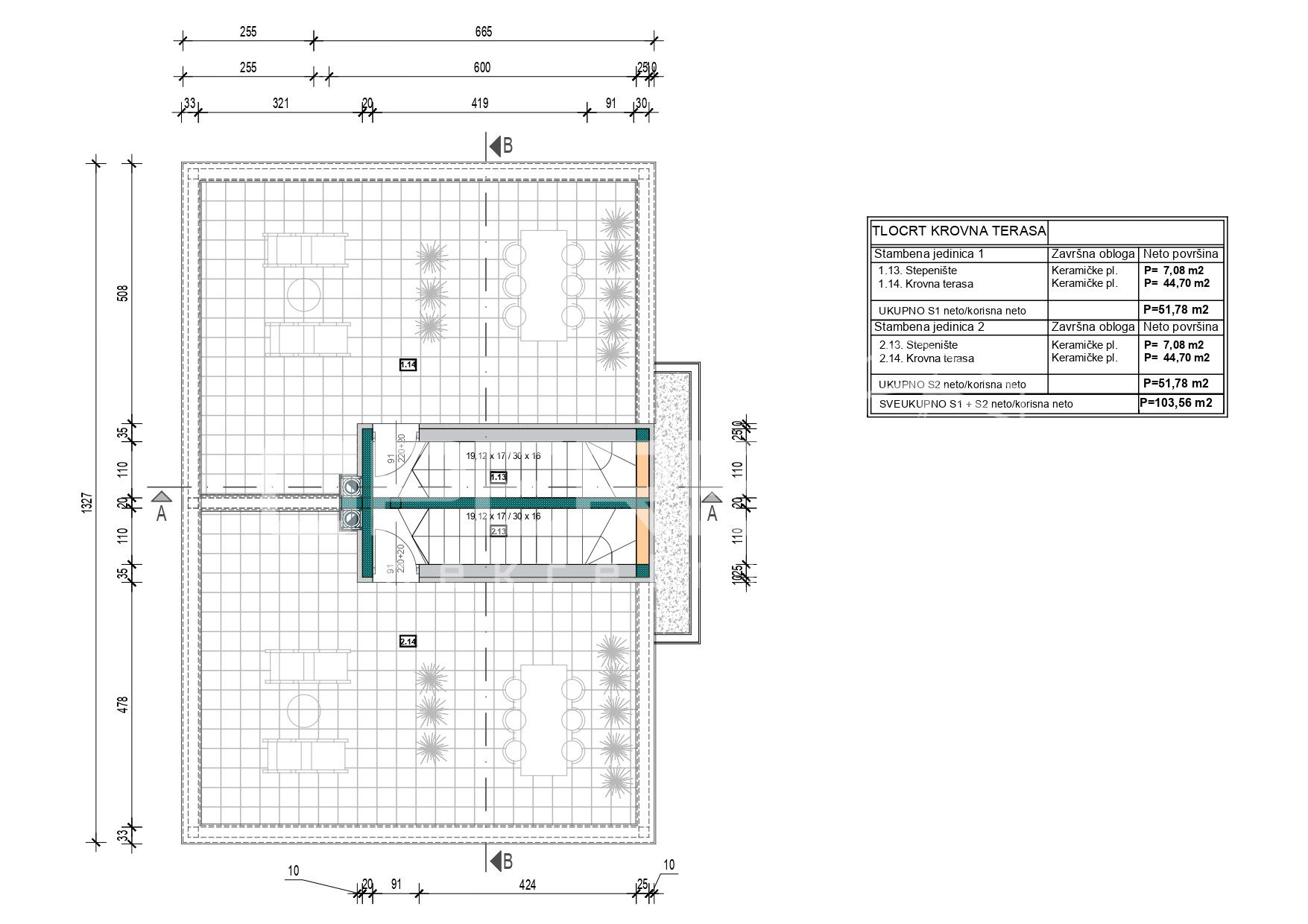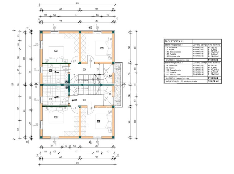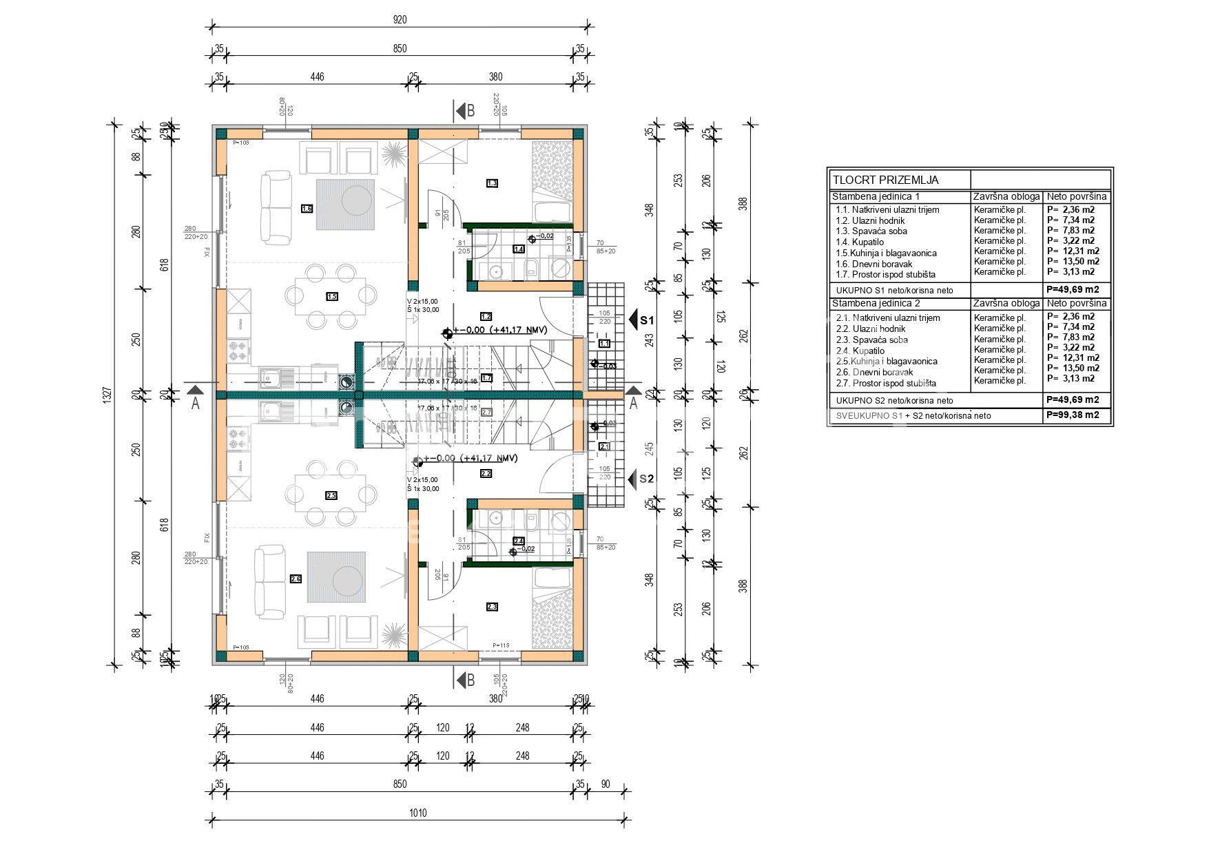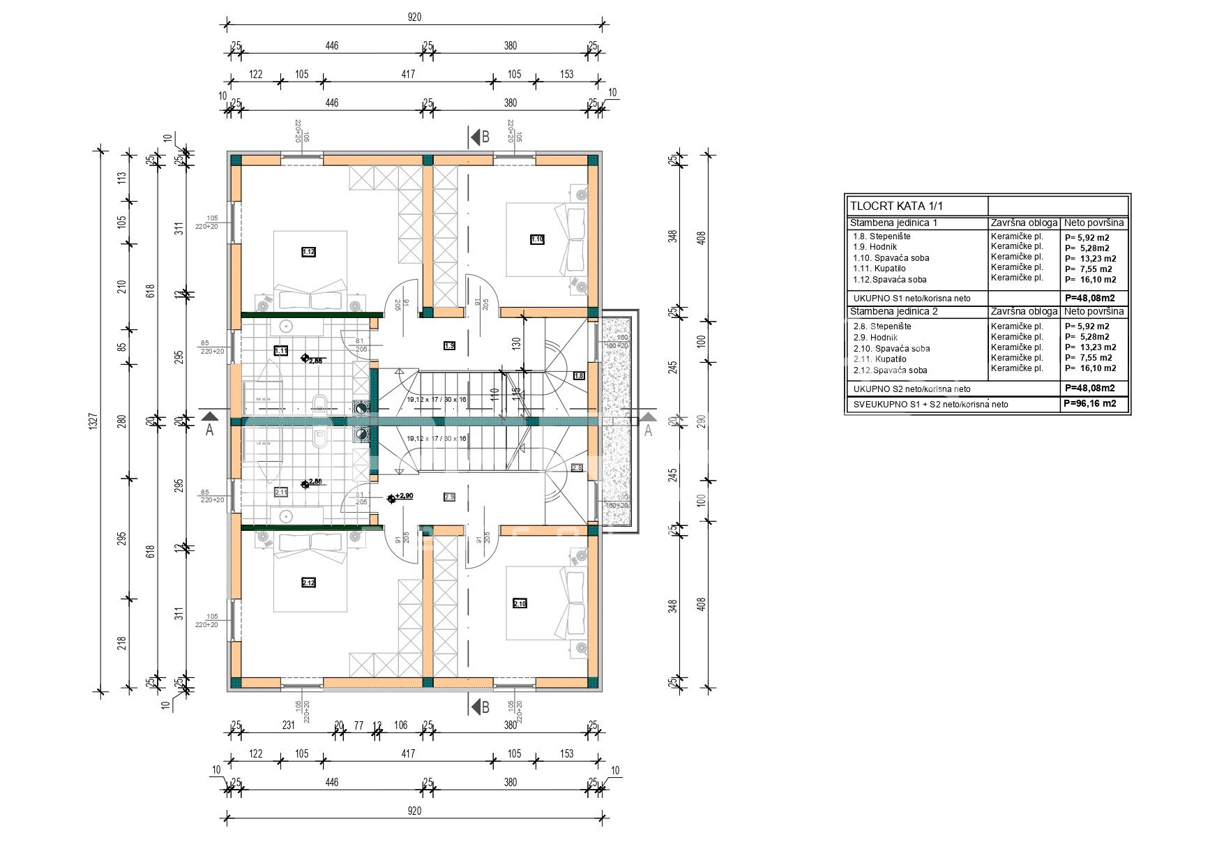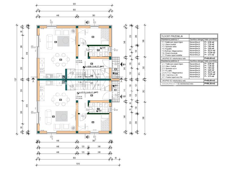 House (apartment) – S1 and S2, each with a net reduced area of 116 m2, of which 98 m2 is the living area.