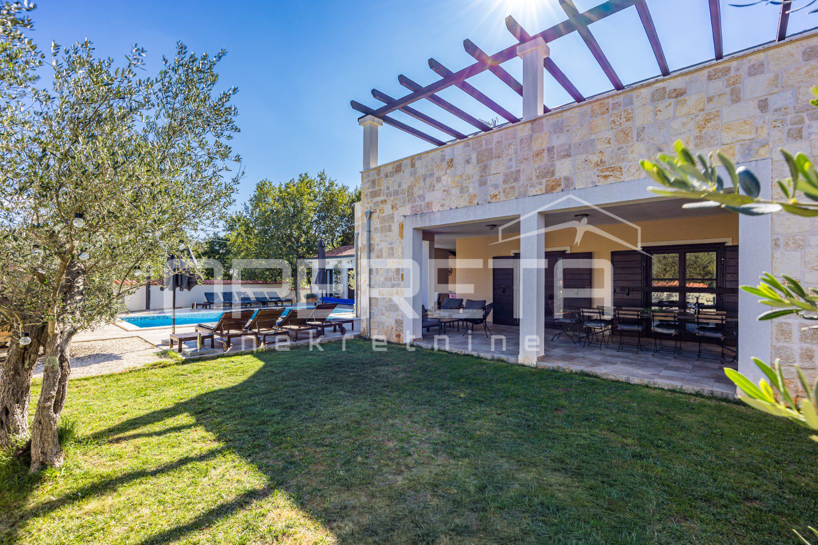 The villa is located on a plot of land of 911 m2, so the outdoor space provides enough comfort for spending time outdoors during sunny days.