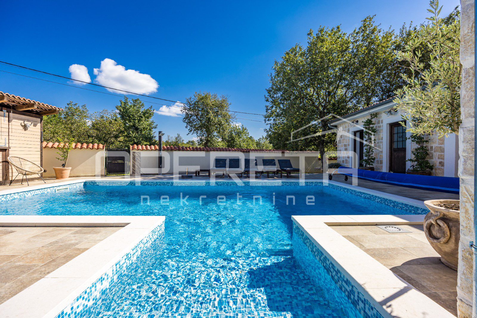 The central part of the courtyard is certainly a heated swimming pool of 41 m2, and all the equipment for the pool was installed new in 2024.