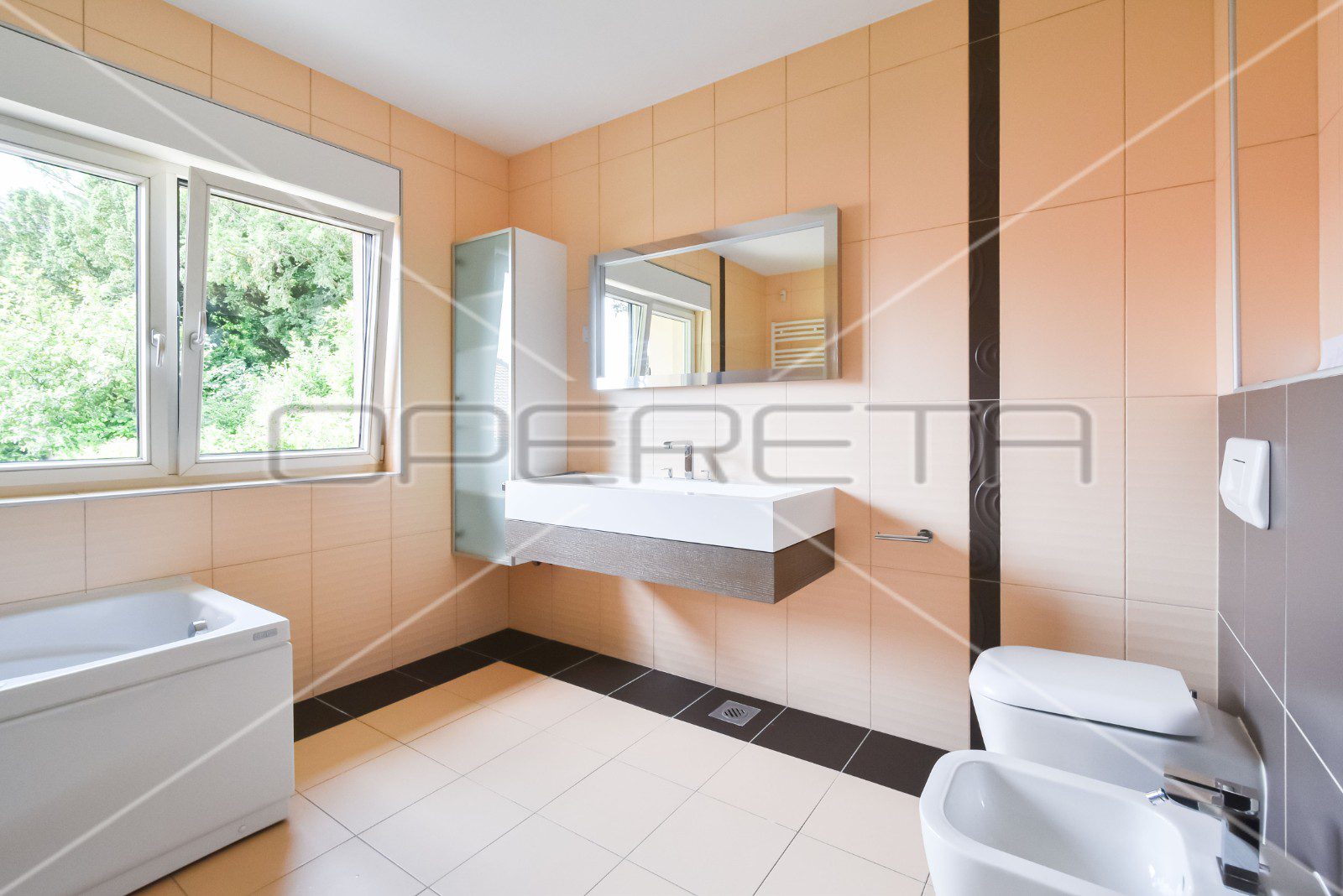 Mihaljevac, Jandrićeva. Beautiful house for rent with yard approx 650m2. It is furnished only the kitchen (refrigerator, dishwasher). In bathrooms floor heating, all rooms are air conditioned. Garage with storage. An additional option, the use of attic space approx 70m2 with separate entrance.