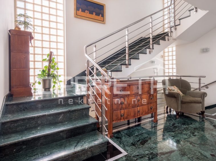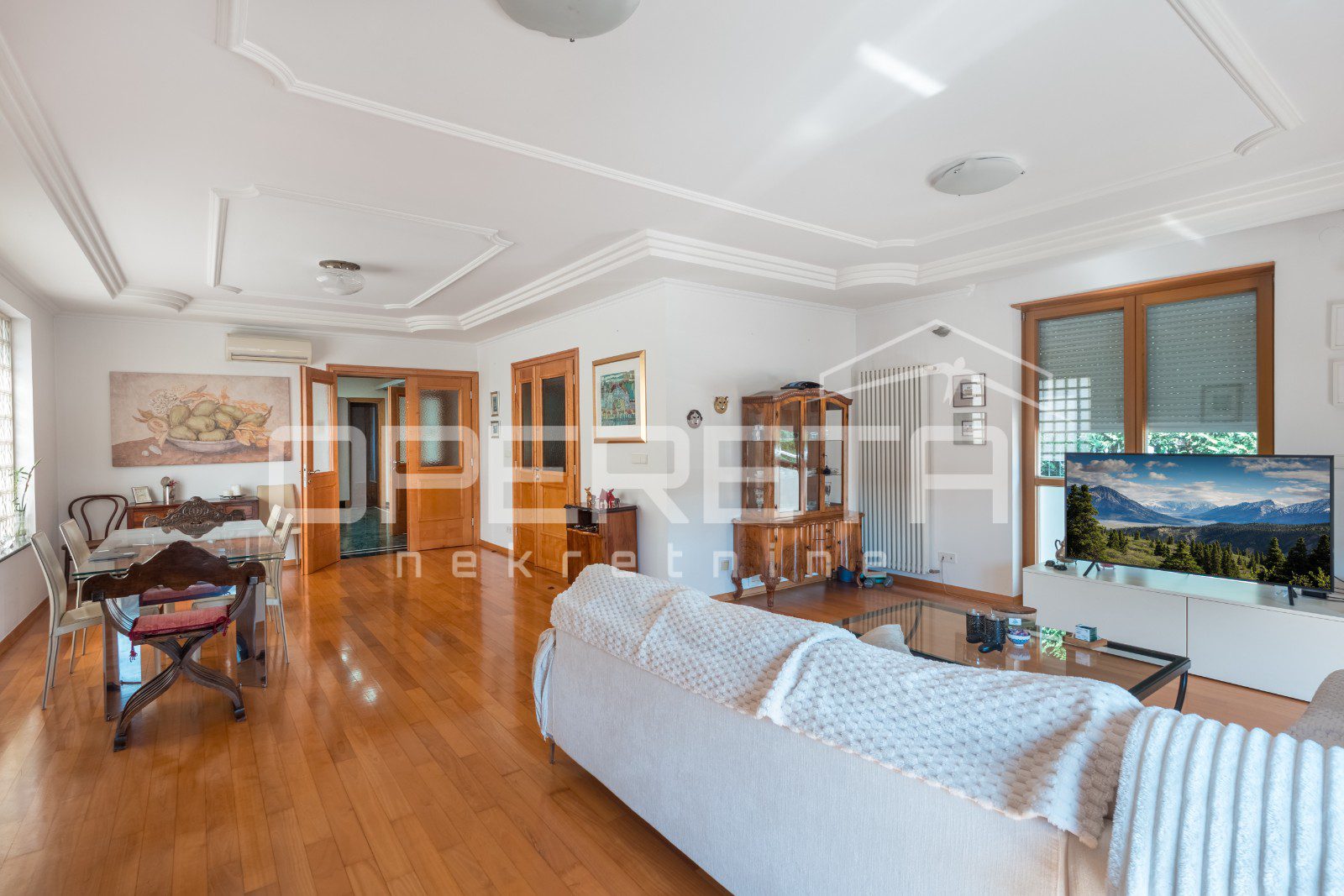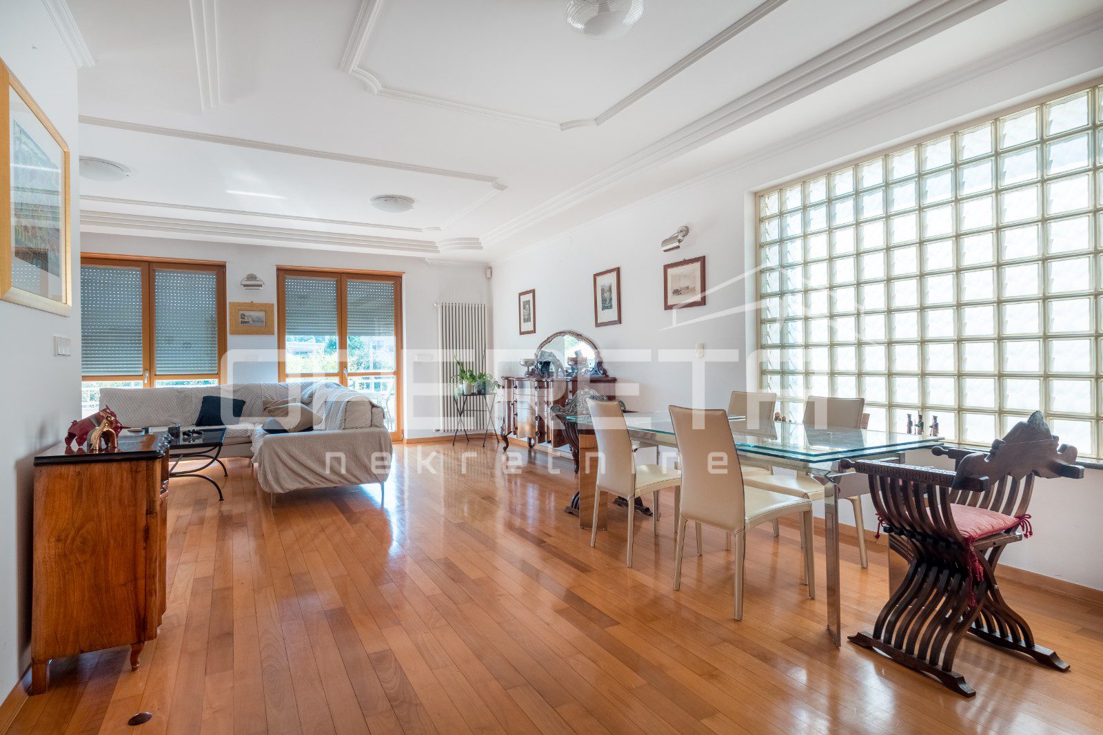 Situated in one of Zagreb’s most sought-after residential neighborhoods – Mlinovi – this elegant detached villa offers privacy, comfort, and security in a peaceful, green setting, just minutes from all essential daily amenities.