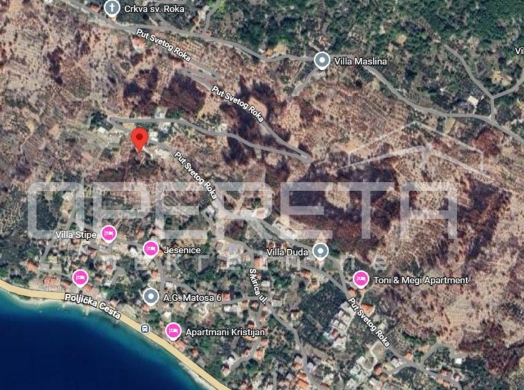A building plot of 676 m² with exceptional development potential is for sale. It is located in the charming village of Jesenice, only 20 minutes from Split – close enough to the city, yet far enough to offer peace, privacy, and a true Mediterranean atmosphere.