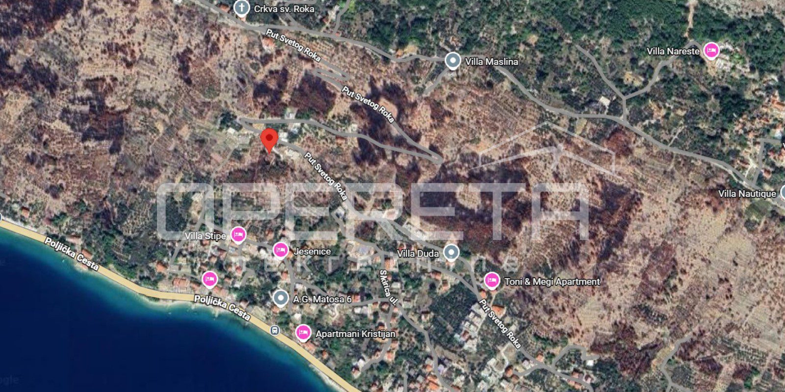 Jesenice is a picturesque coastal settlement located between Split and Omiš. It is known for its beautiful pebble beaches, crystal-clear sea, and authentic Dalmatian charm. The area provides a peaceful atmosphere ideal for living or vacationing, while offering excellent connectivity — Split is only 20 minutes away, and Omiš just a few minutes further. Nearby you will find all essential amenities such as shops, restaurants, bus lines, and marinas. Jesenice is recognized as an attractive location for tourism-oriented developments and modern residential construction.