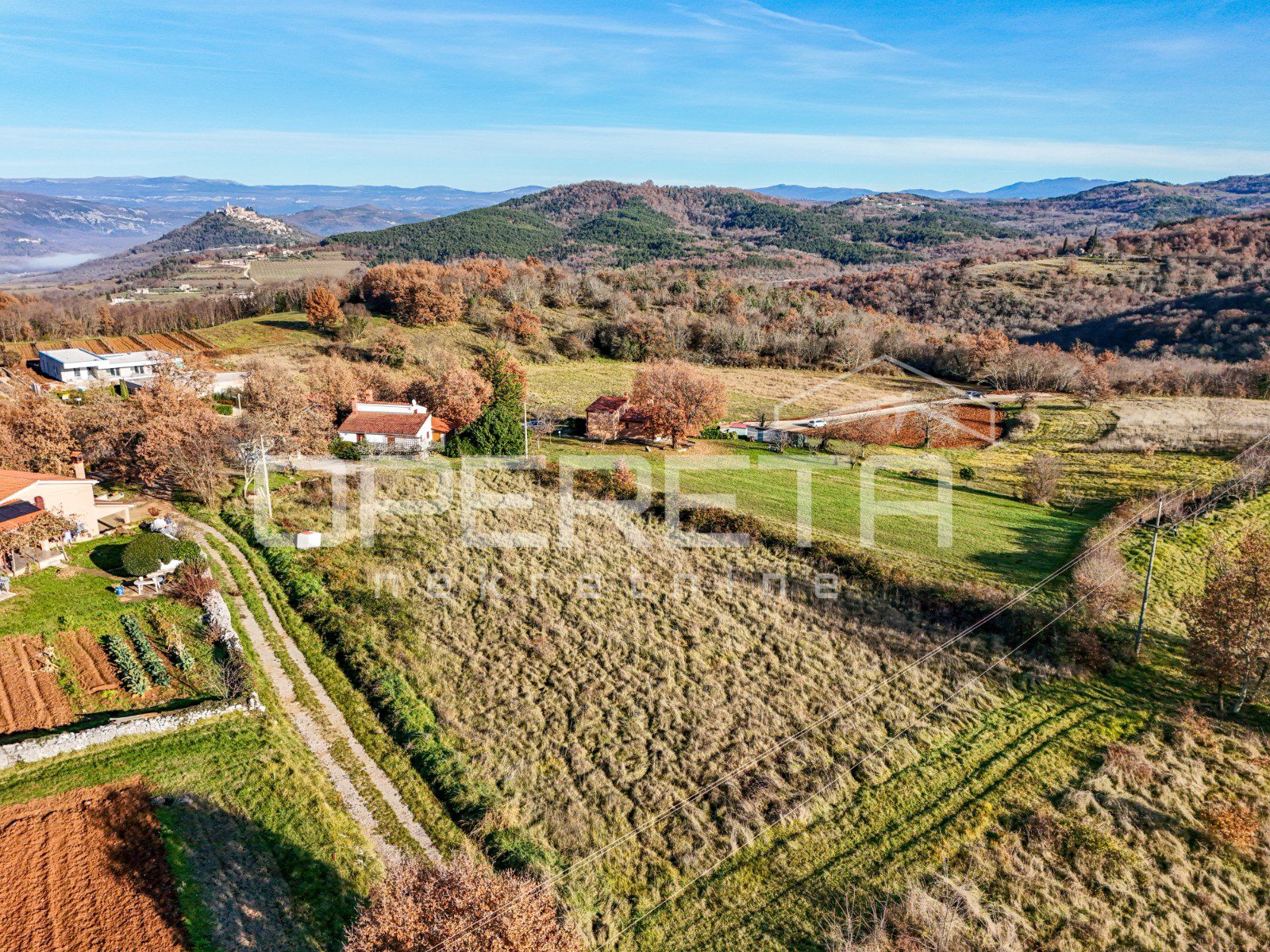 Located in the quiet village of Rakotule, near the magical town of Motovun, is this attractive building plot with a total area of 704 m2. The plot is situated on a gentle slope, providing a stunning, open view of Motovun and the picturesque landscape of central Istria. The land is fully cleared, and its greatest advantage is the already obtained building permit, allowing for an immediate start of construction. All necessary infrastructure is located in the immediate vicinity, with a secured access road. Surrounded by nature, this plot is ideal for building a family home or a vacation villa offering complete peace and an authentic Istrian atmosphere.