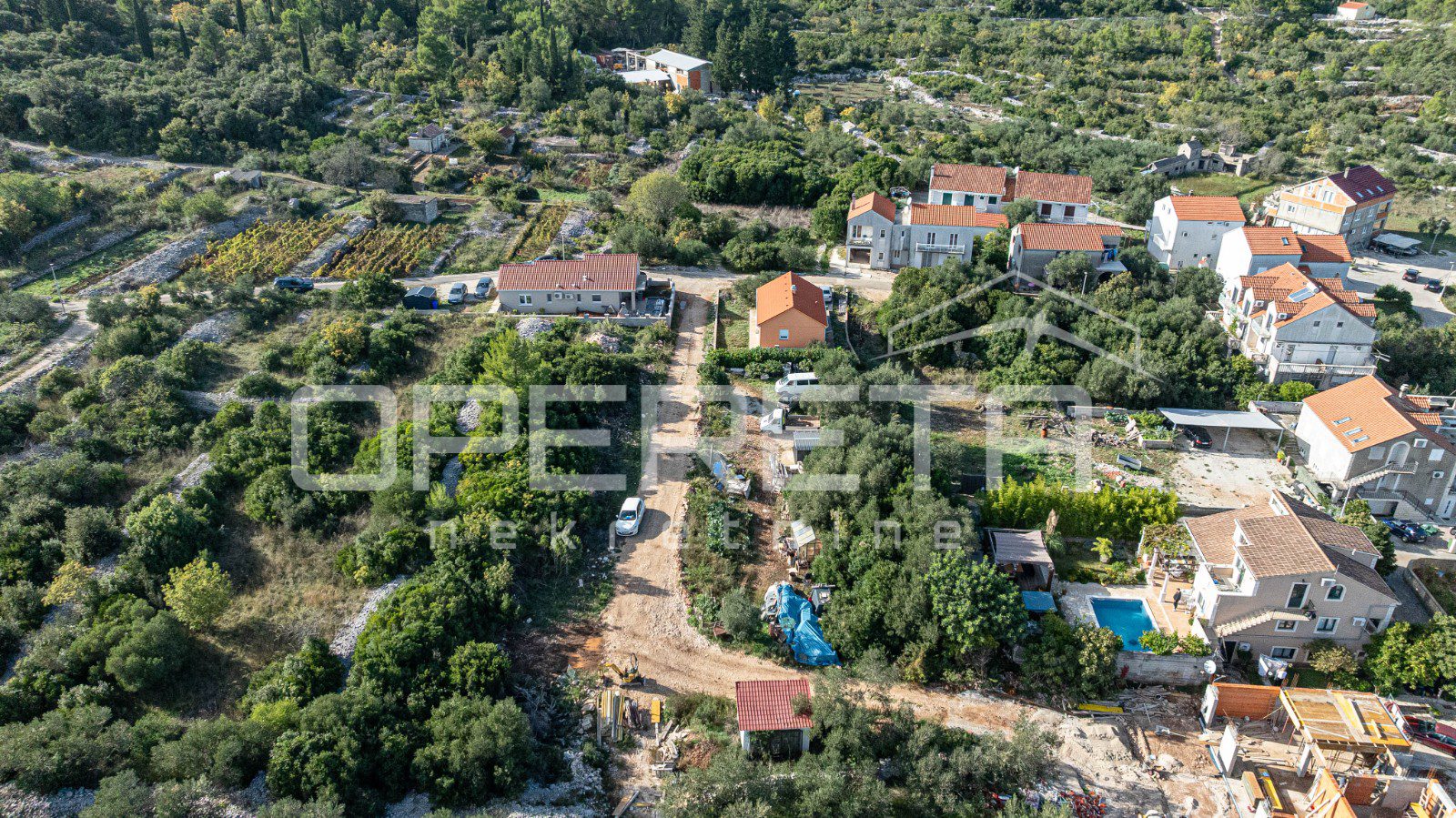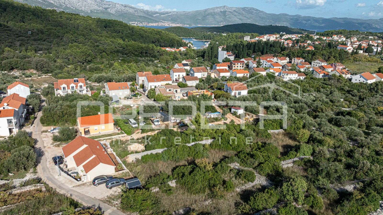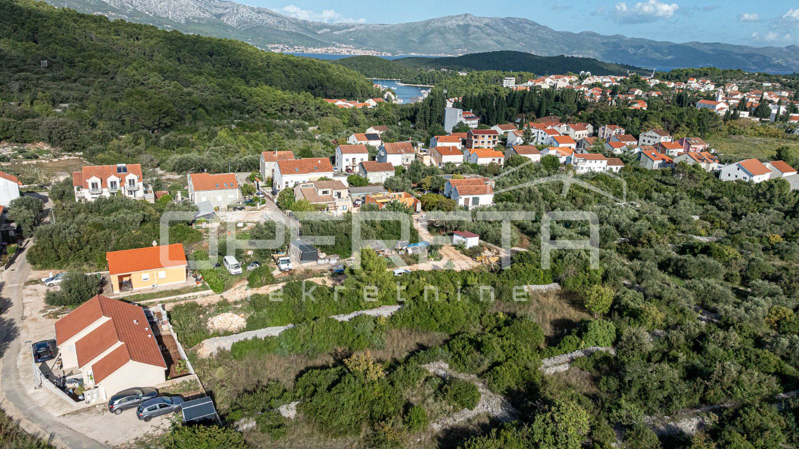 This building plot, with a total area of 1,451 m² and composed of three separate parcels, is located in a quiet and well-organized part of Korčula, ideal for family living or the construction of residential buildings.