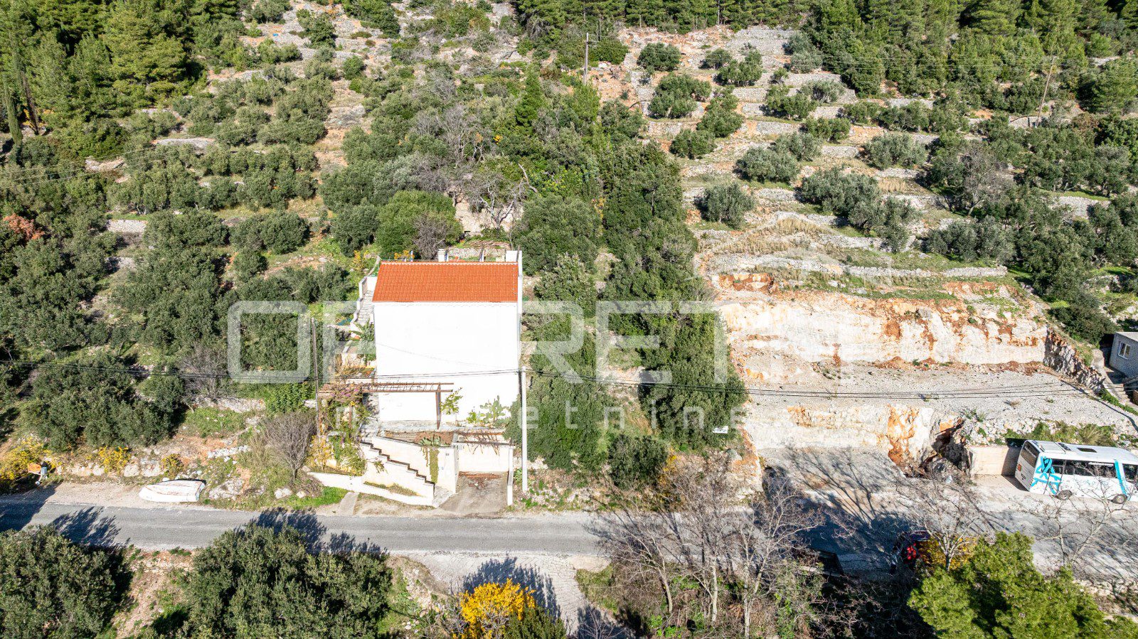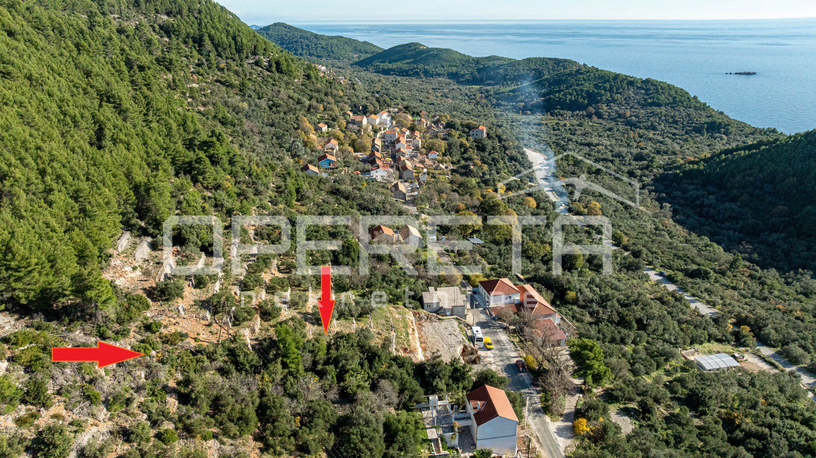 The land is located about 1 km from the sea, while the Sobra ferry port is around 4–5 km away, providing good connectivity to the mainland while maintaining the tranquility and calm of the area.