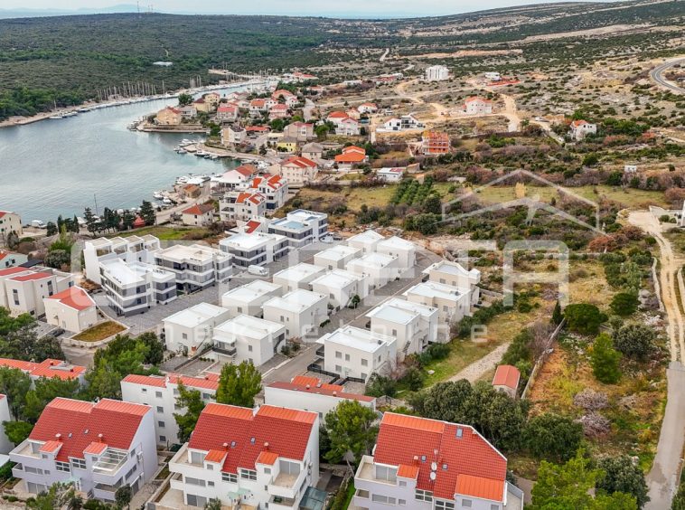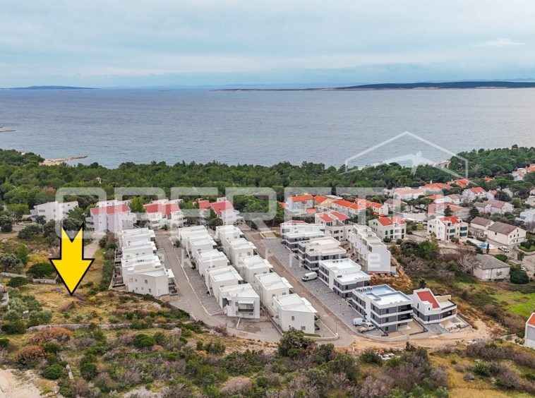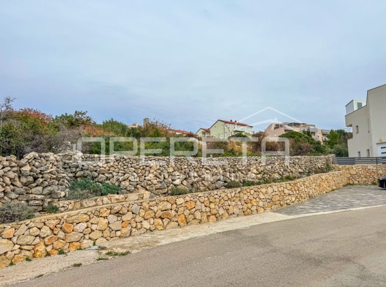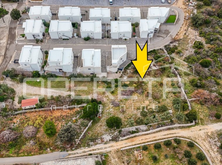 In the small but distinctive village of Šimuni on the island of Pag, there is a building plot situated on a gently elevated position with a secured sea view from several sides.