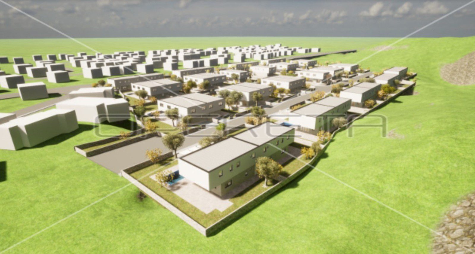 For now, the first phase is in the process of obtaining a building permit for the first row of a complex of 8 houses along the existing road and which are about to be issued. The remaining permits will be obtained with changes to the spatial plan, which is planned for the 3rd quarter of 2024.