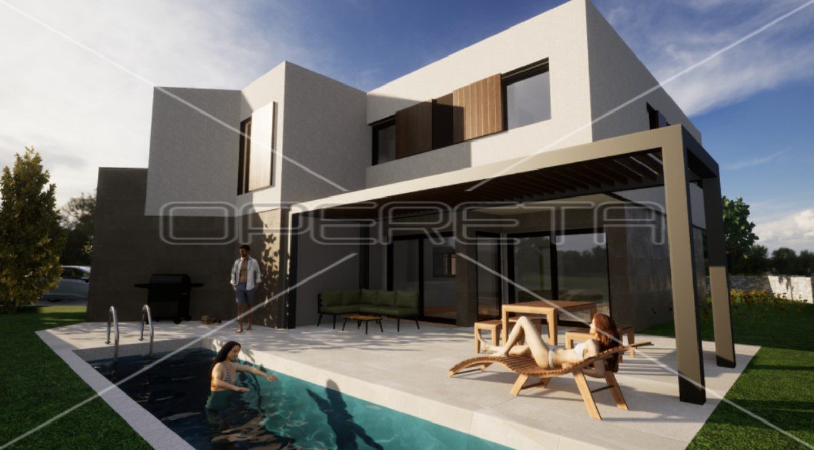 There are currently two concepts for developing the project, the first more luxurious one that includes detached villas of approximately 400 m2 with a swimming pool, while the more economical variant divides that villa into 2 residential units.