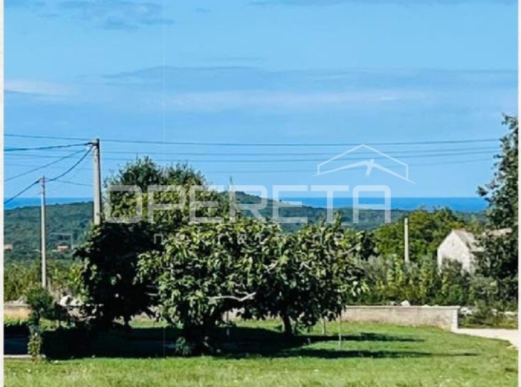 An extremely attractive building plot is for sale, located in a quiet and picturesque village in the municipality of Sveti Lovreč. This location is ideal for anyone looking for a blend of peaceful surroundings and proximity to urban amenities and beaches.The land spans 720 m2 of pure building potential. Its uniqueness lies in its position – it is situated right next to a charming olive grove and offers an unforgettable, open view of the sea and the green landscapes of Istria. The plot has a regular shape, is flat, and neatly maintained, while the necessary infrastructure is located right next to the plot.