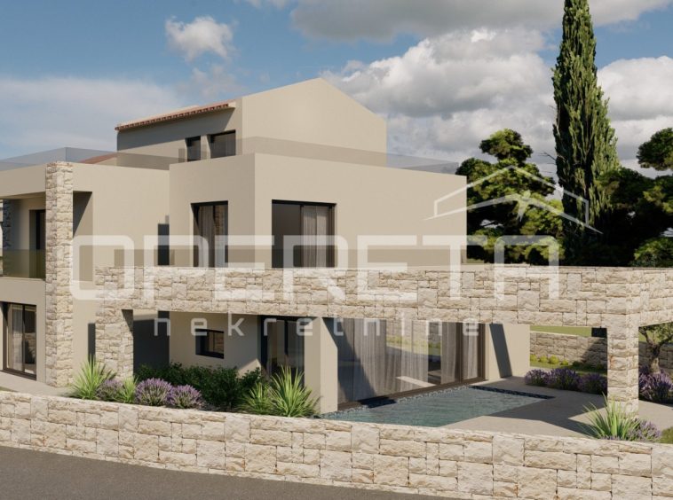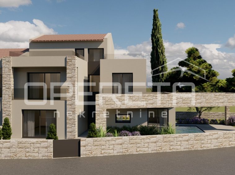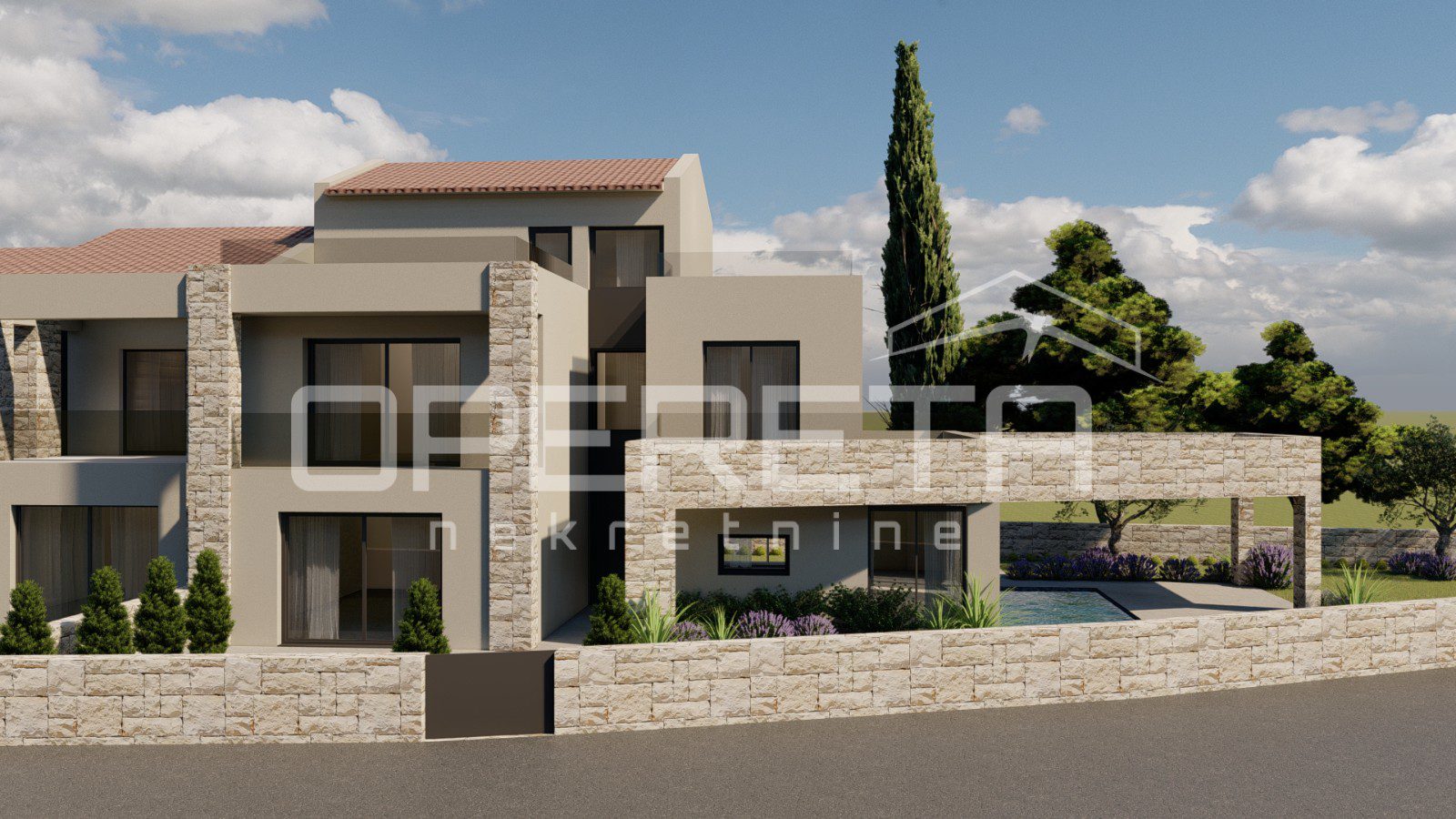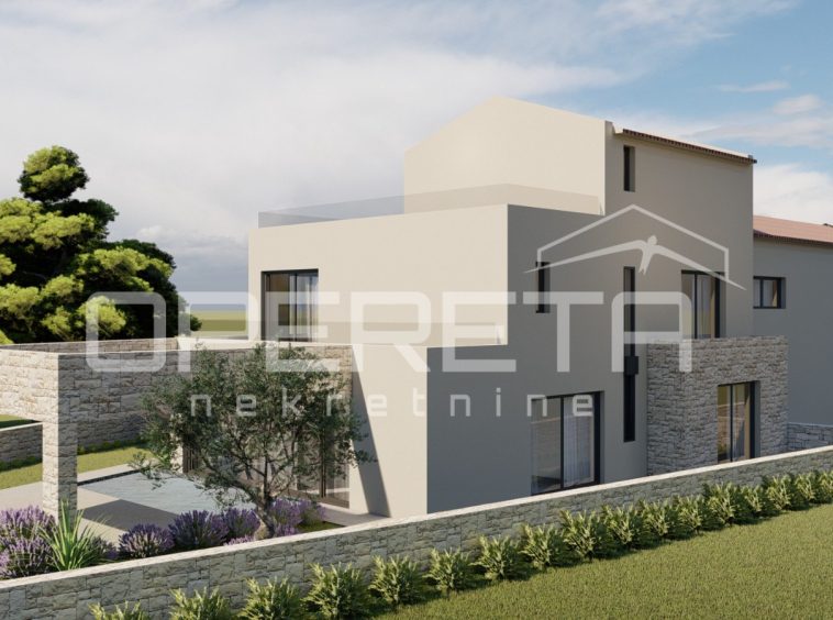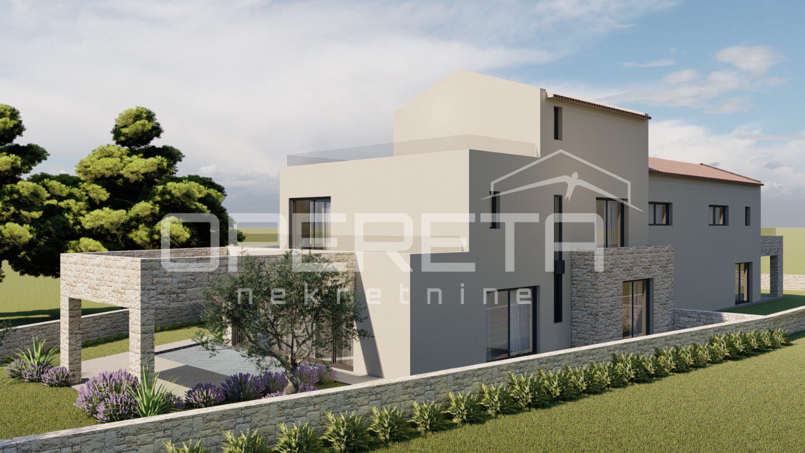 According to the project, the planned building includes a living room, four bedrooms, a gym, and a swimming pool. The property is designed as part of a semi-detached house and is attached on one side to the building on the neighbouring plot. However, it lies on its own cadastral parcel, has its own building permit, and can be constructed independently of the neighbouring building. Both plots are owned by the same person.