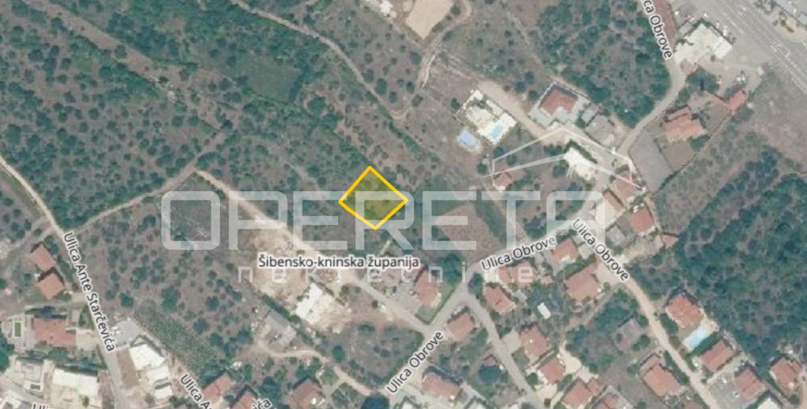 According to the PPUG Vodice, the plot is situated within the undeveloped part of the settlement’s building area with mixed use (predominantly residential). Construction is allowed with a maximum above-ground floor area (BRP) of 360 m² (floor area ratio 0.6), with the possibility of additional underground floors (basement + lower ground floor). For single-family houses, the maximum total area is 400 m².