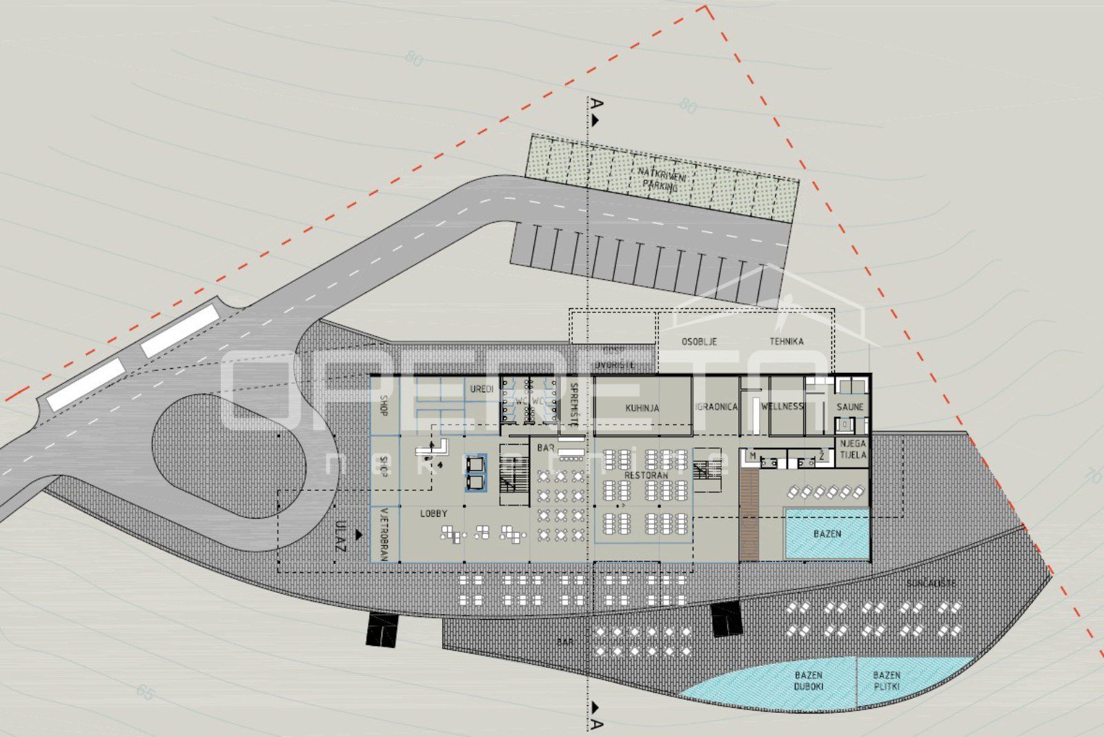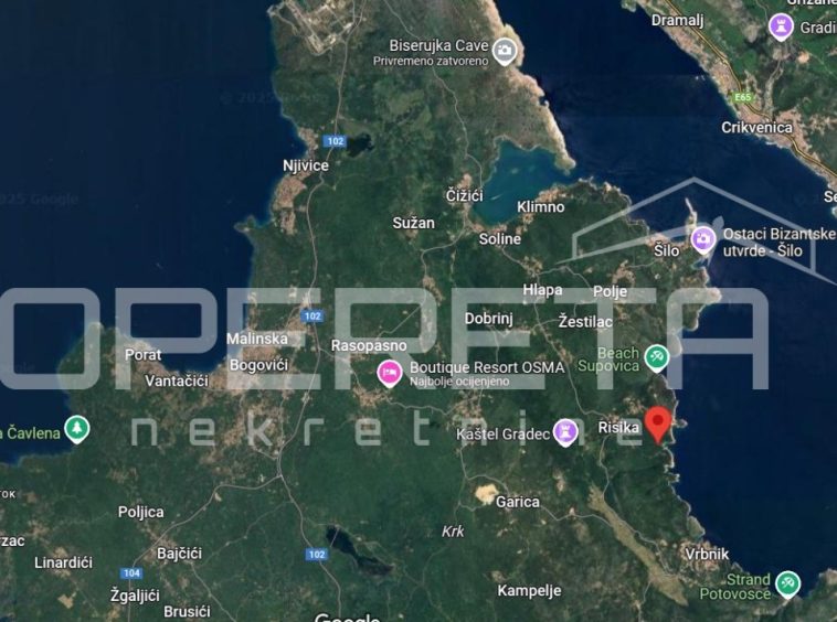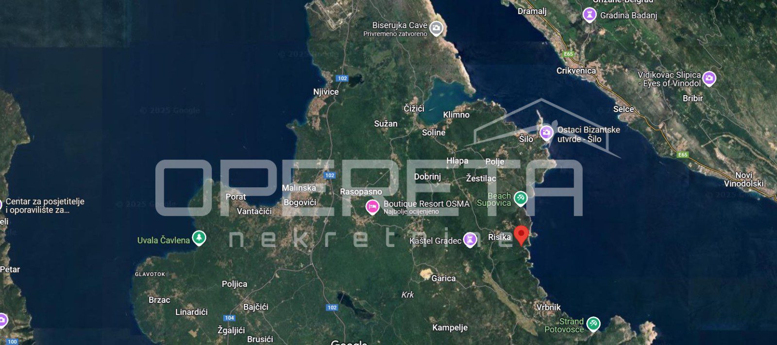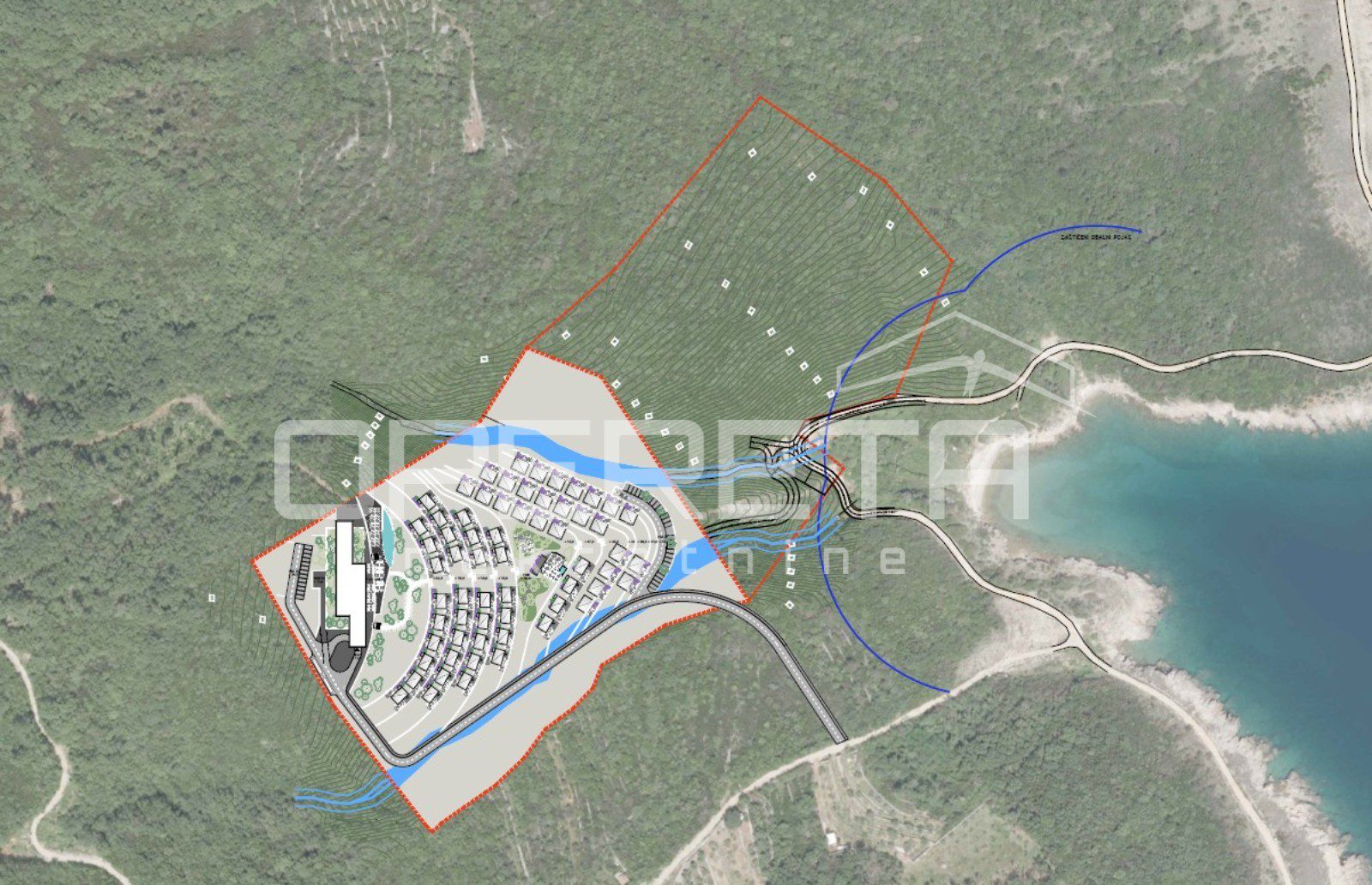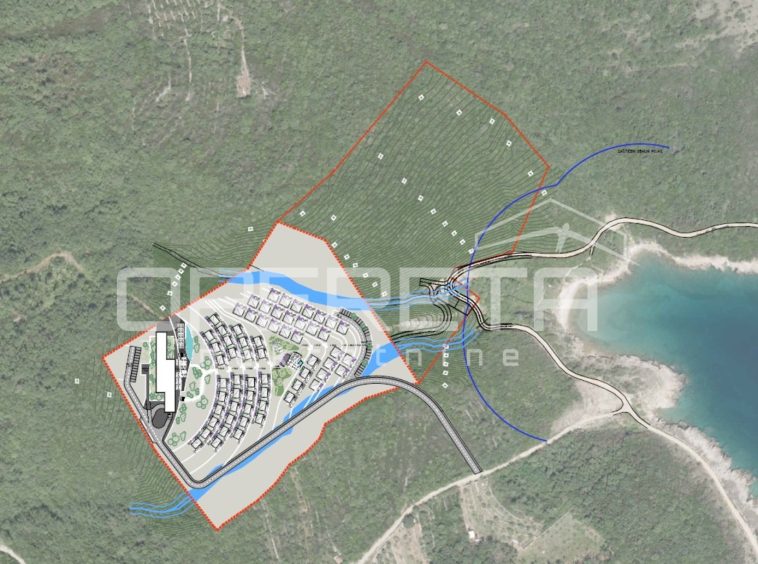 We offer a plot of land consisting of two plots. The first plot is for catering and tourism purposes, while the second plot is for sports and recreational purposes. Together, the plots form a beautiful project for the construction of a tourist resort in an excellent location on the island of Krk. According to the project, the resort would consist of a hotel and bungalows and accompanying facilities. The land with the Preliminary Project is located in the immediate vicinity of Melska Bay, 3 km from Vrbnik and 20 km from Rijeka Airport, opposite Crikvenica. Its configuration, from a beautiful natural pebble beach to the top of the terrain with a height difference of 70 m, provides an ideal opportunity to build about 60 bungalows, each with an open view of the sea, and a hotel with about 70 rooms. Next to the land itself, there is a natural pebble beach of about 3000 m2 and two more bays south towards Vrbnik with beaches of a total area of 3000 m2, just 500 m from the future settlement, ideal for organizing entertainment activities for day and night life, and 700 m north there is a sandy beach and a small port.