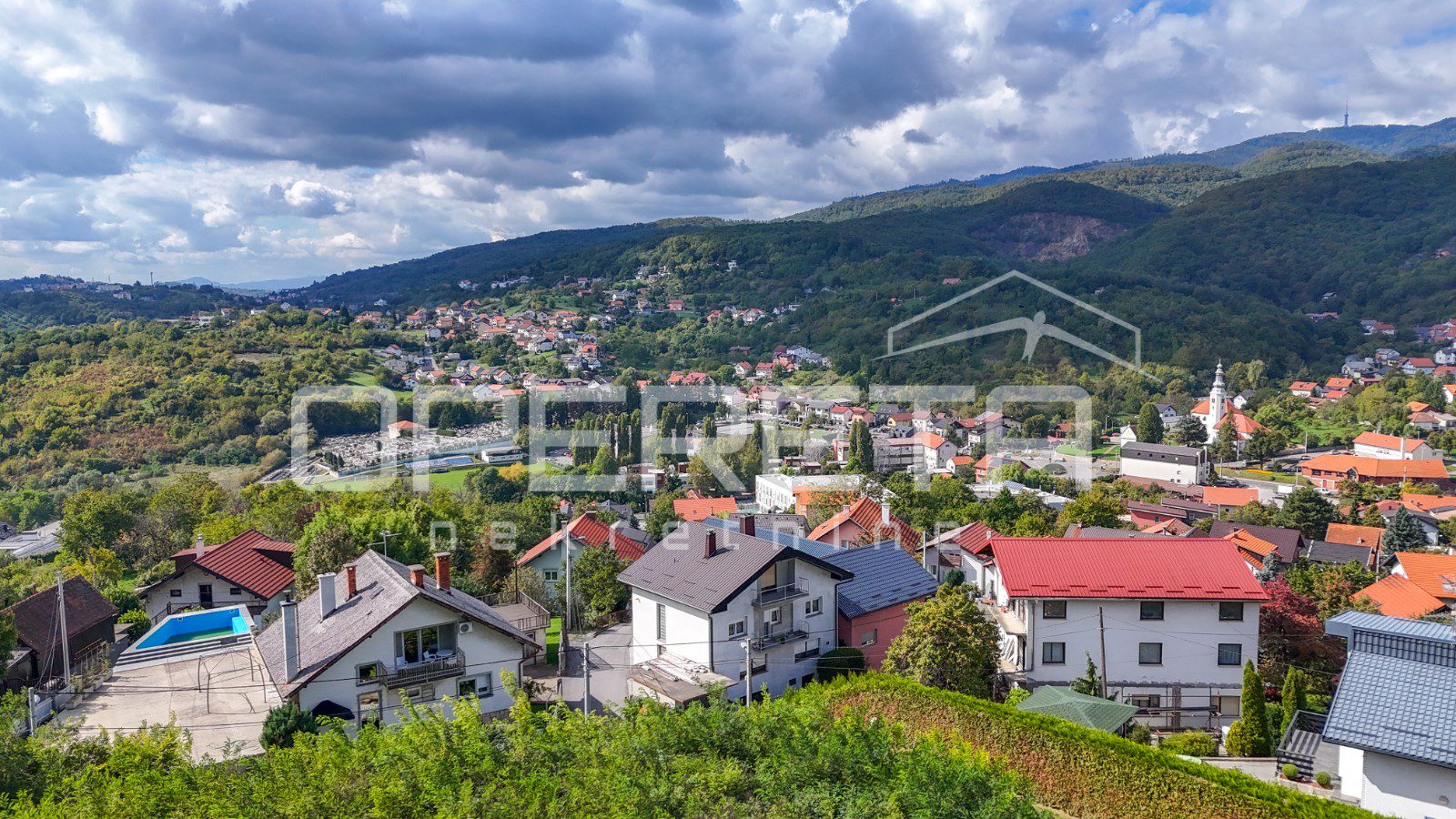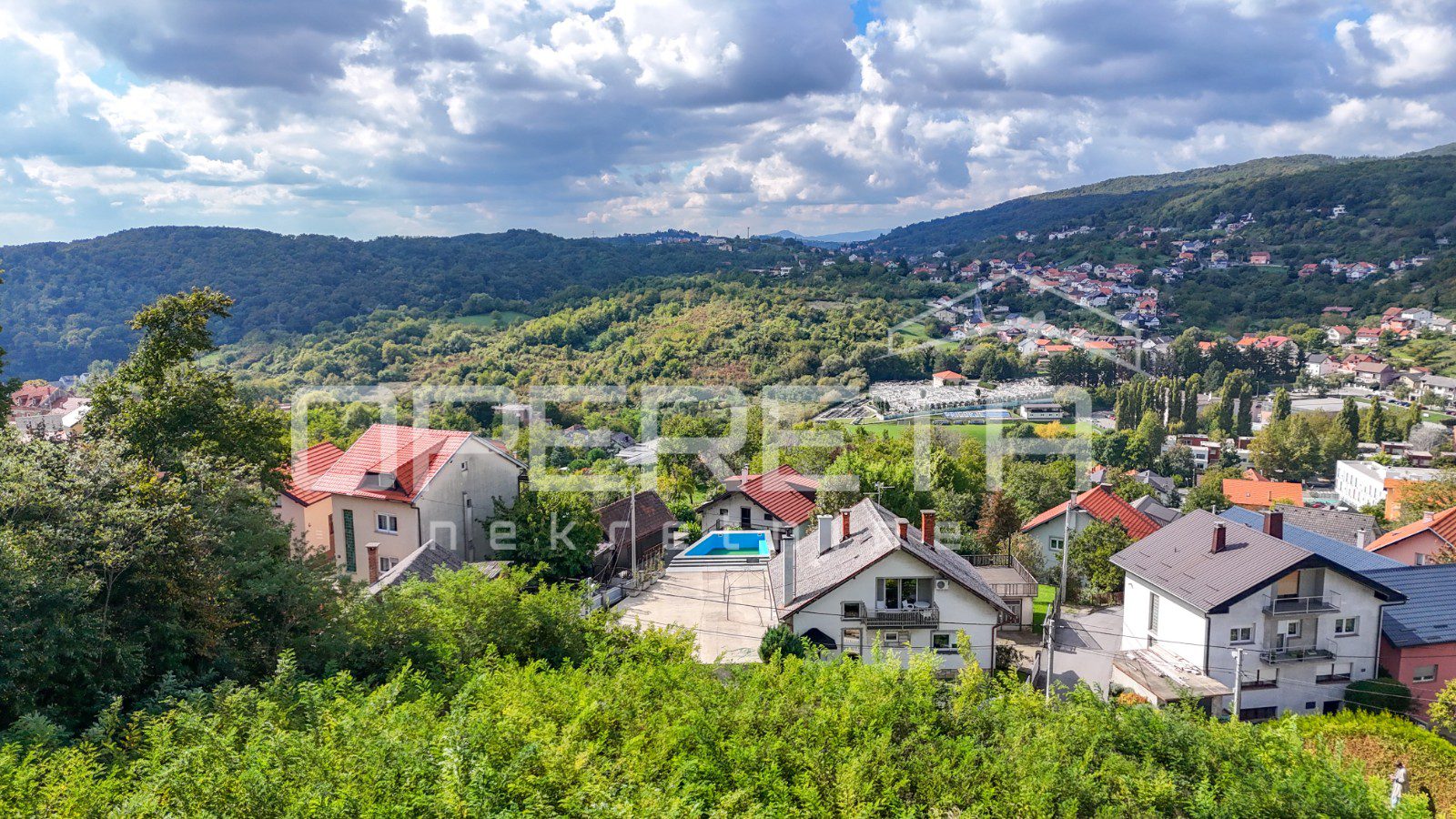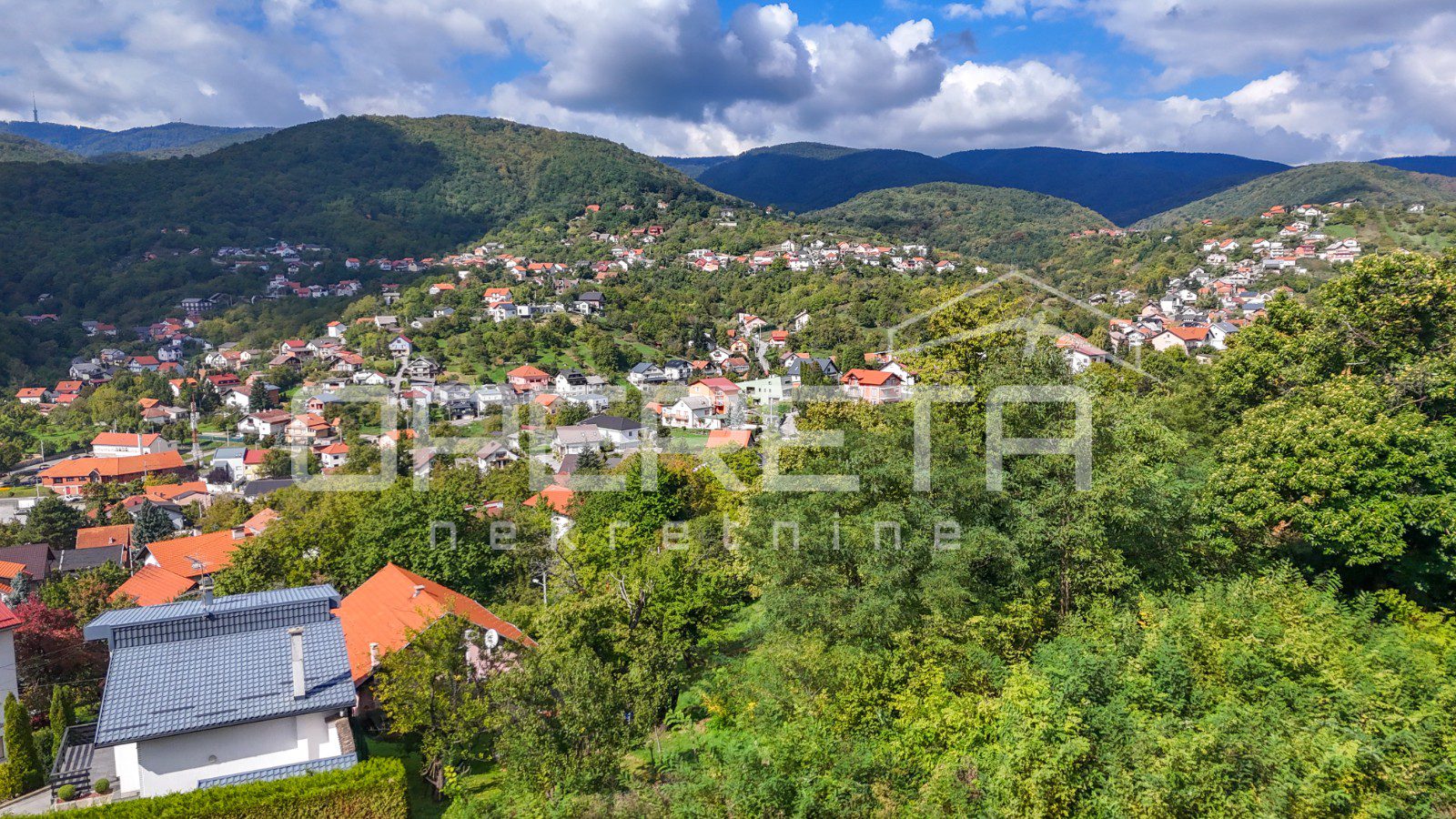 The plot is situated on an elevated position above the neighboring houses and offers a panoramic view of the surrounding hills and settlement, without the possibility of obstruction. The view is emphasized as it represents one of the main values of this property.